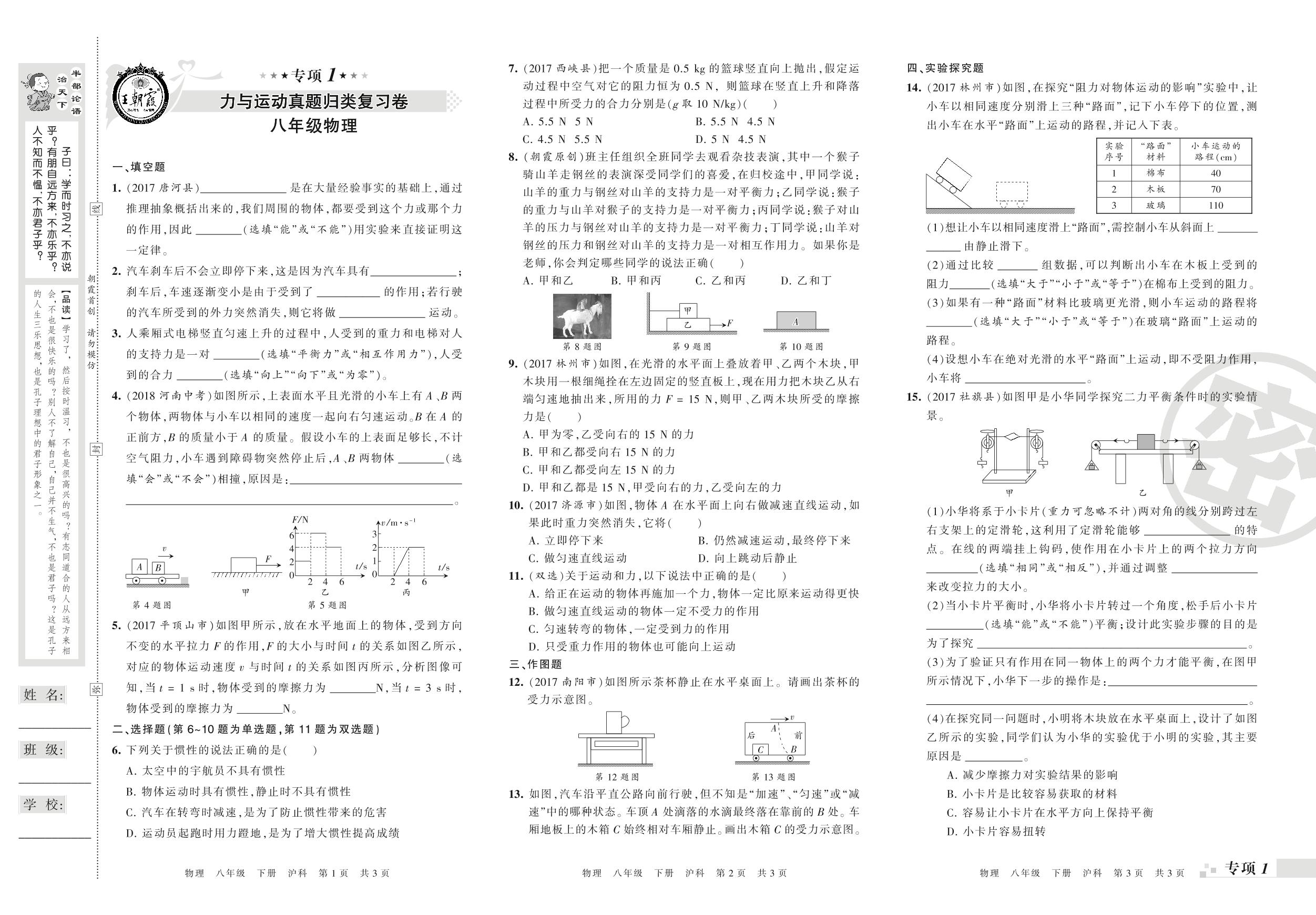 王朝霞期末专项卷——力与运动真题归类复习、压强真题归类复习(一)八年级下册物理(沪科版)_R210810174522【0】