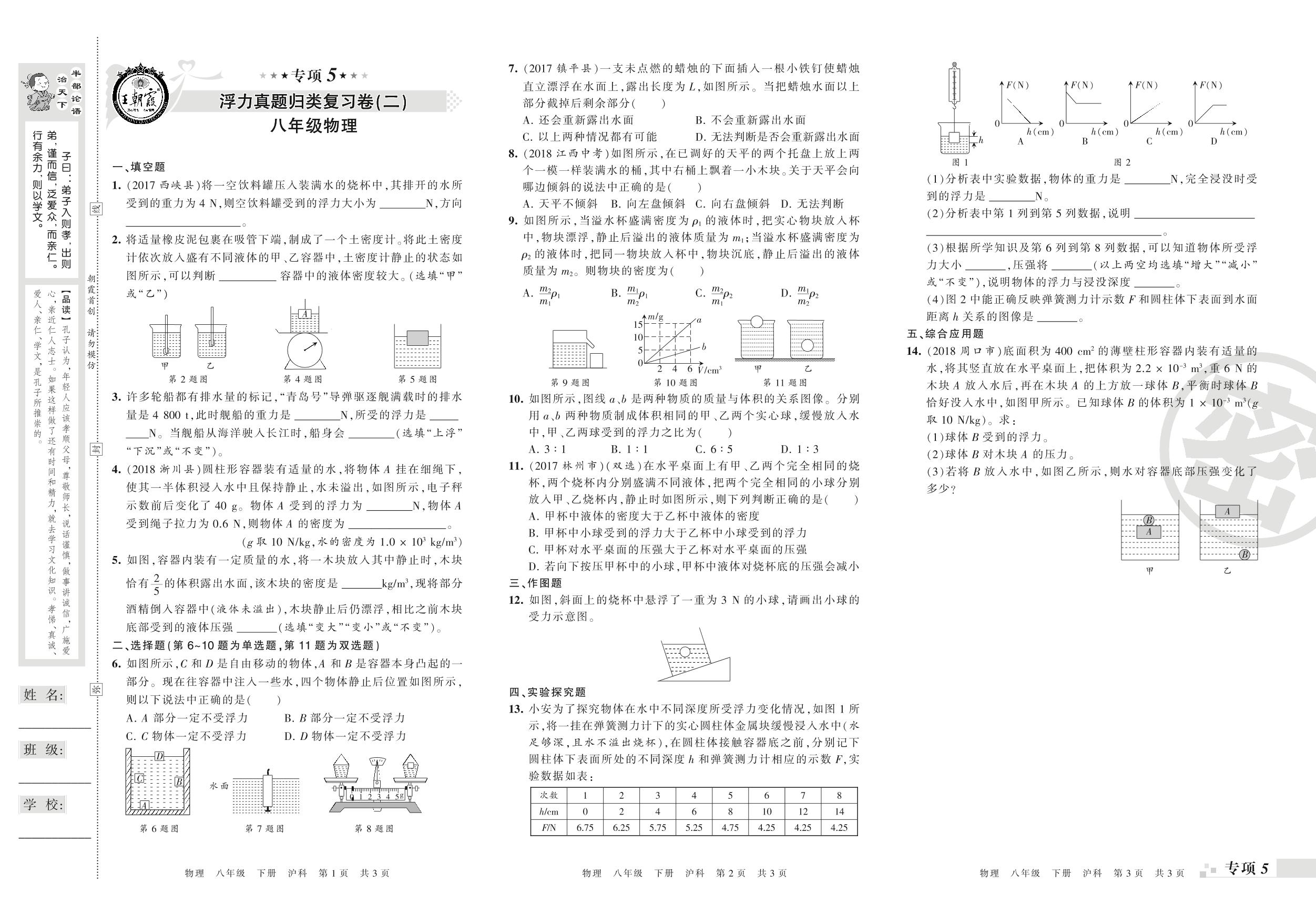 王朝霞期末专项卷——浮力真题归类复习(二)、简单机械应用真题归类复习八年级下册物理(沪科版)_R210810174539【0】