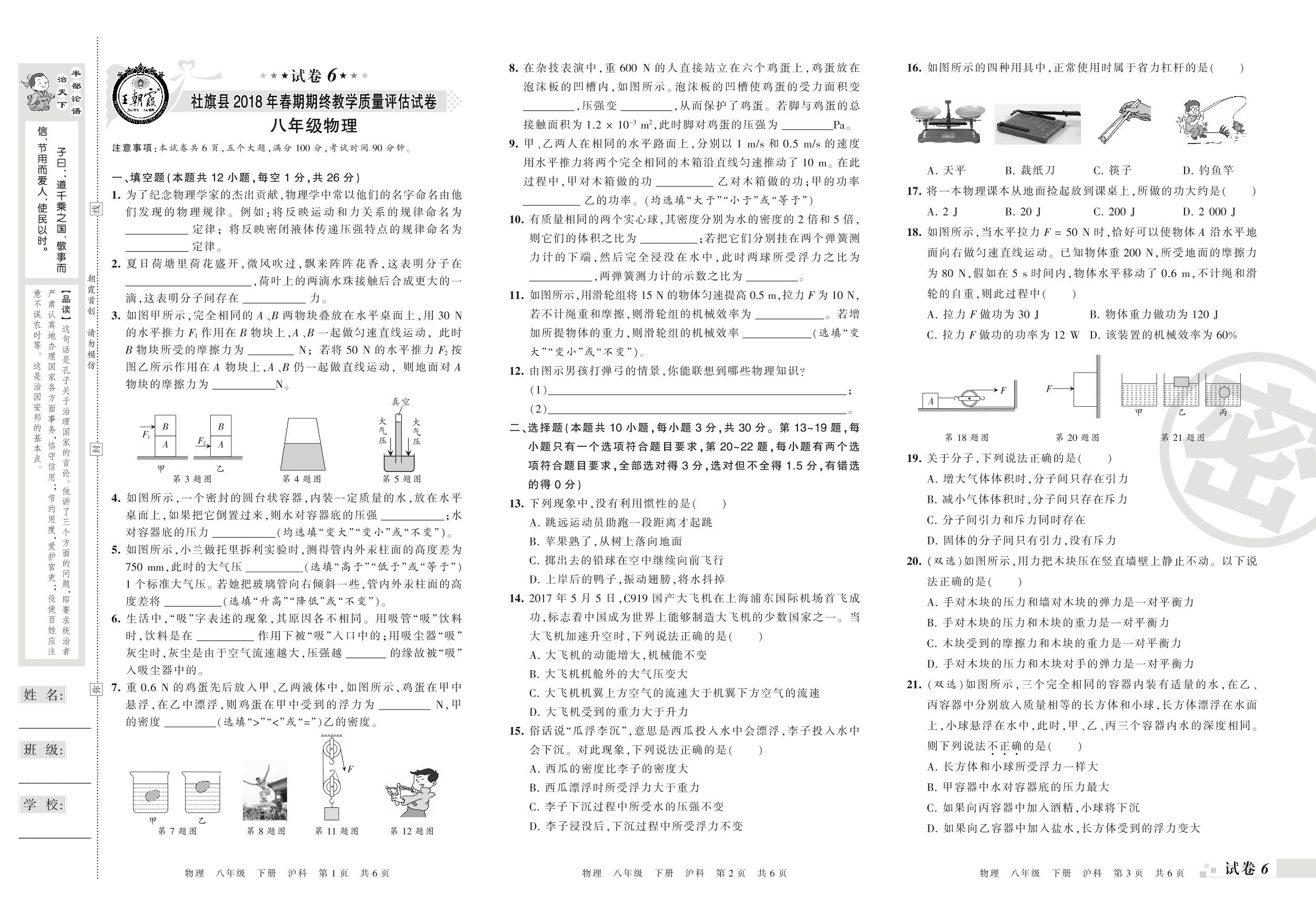 2017-2018学年第二学期南阳市社旗县八年级物理试卷(沪科版)【6】