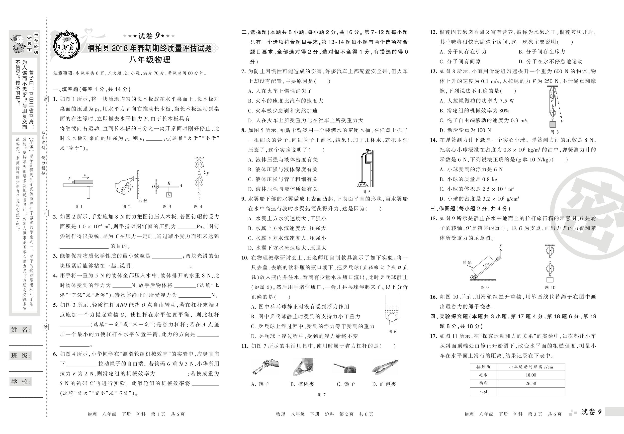 2017-2018学年第二学期南阳市桐柏县八年级物理试卷(沪科版)【9】