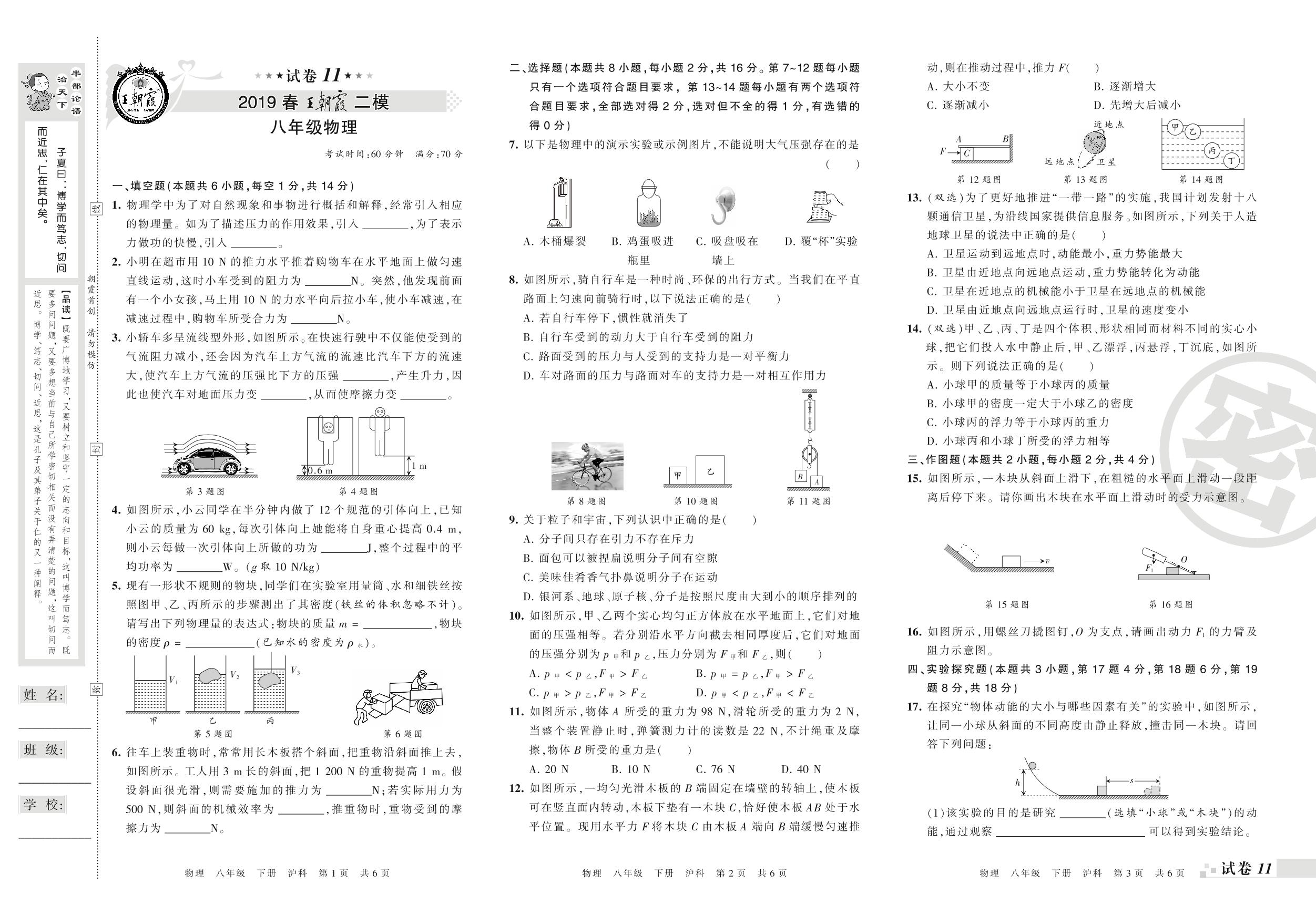 2018-2019学年第二学期王朝霞期末模拟卷八年级物理(沪科版)_R210810174720【11】