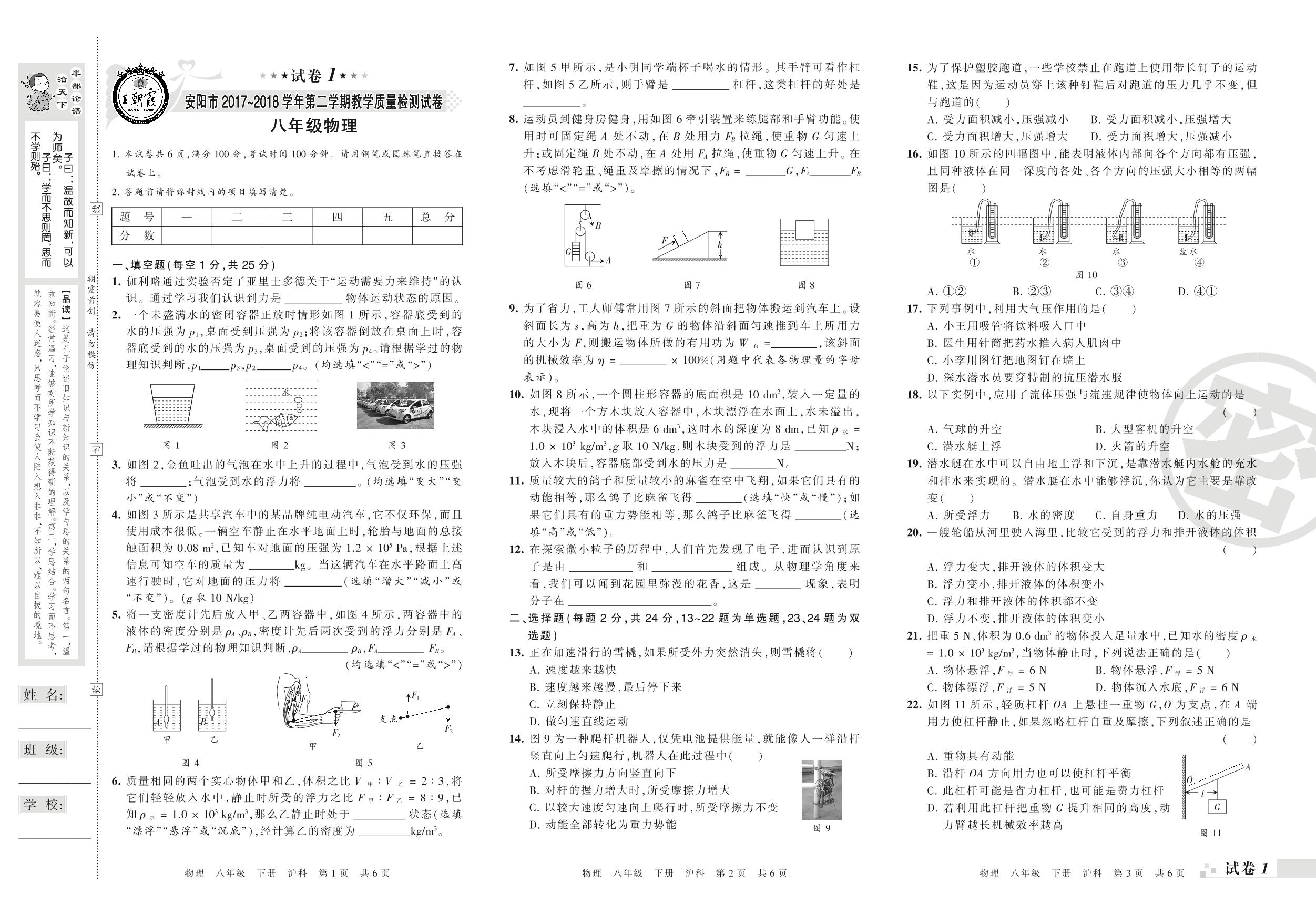 2017-2018学年第二学期安阳市八年级物理试卷(沪科版)_R210810174801【1】