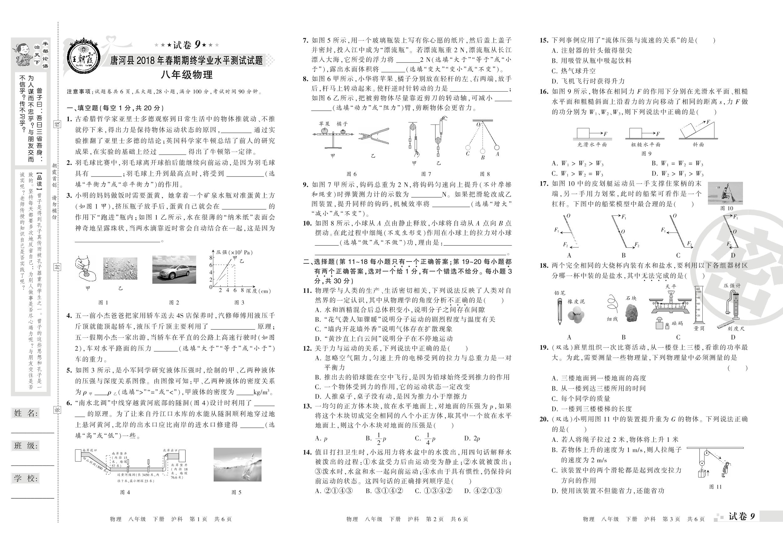 2017-2018学年第二学期南阳市唐河县八年级物理试卷(沪科版)【9】
