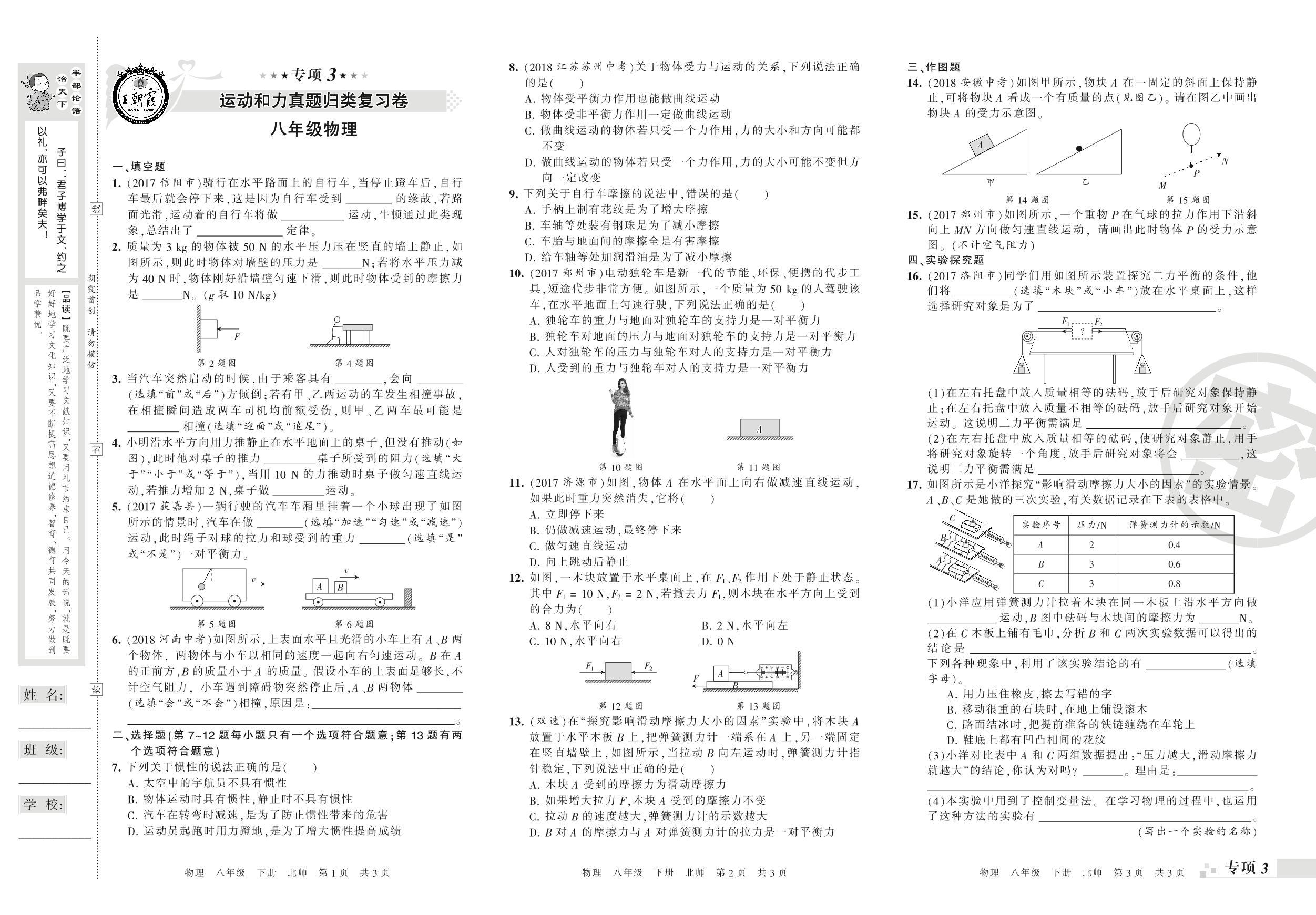 王朝霞期末专项卷——运动和力真题归类复习、压强真题归类复习(一)八年级下册物理(北师版)【0】