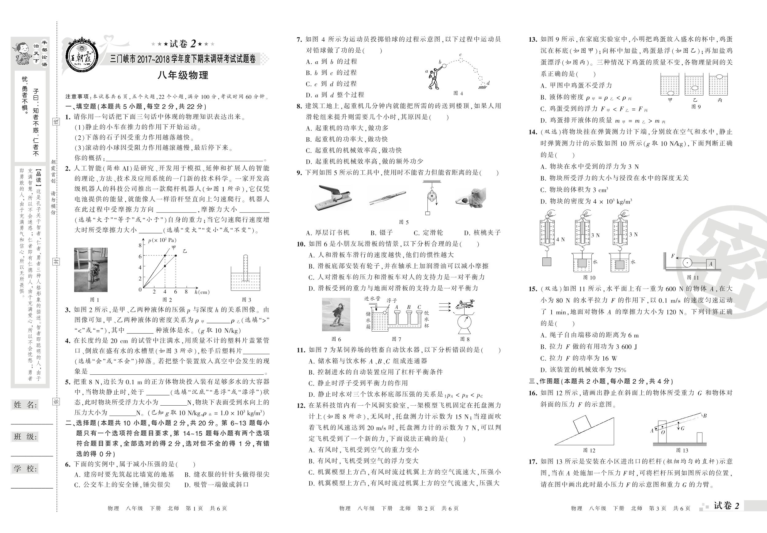 2017-2018学年第二学期三门峡市八年级物理试卷(北师版)【2】