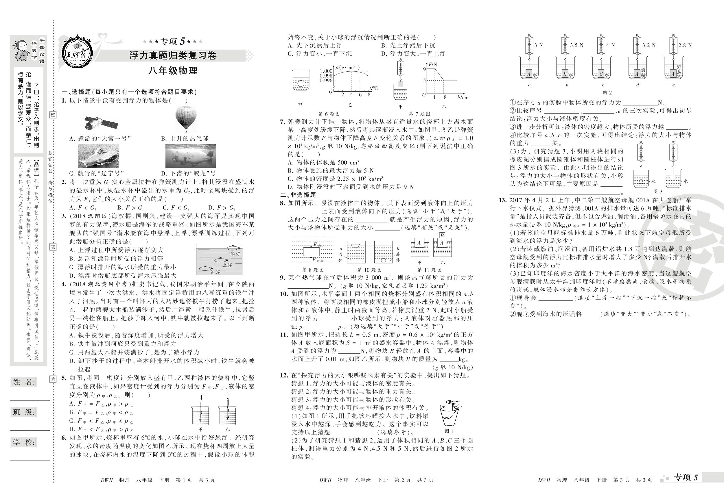 王朝霞期末专项卷——浮力真题归类复习、功和机械能真题归类复习八年级下册物理(人教版)_R210810175220【0】