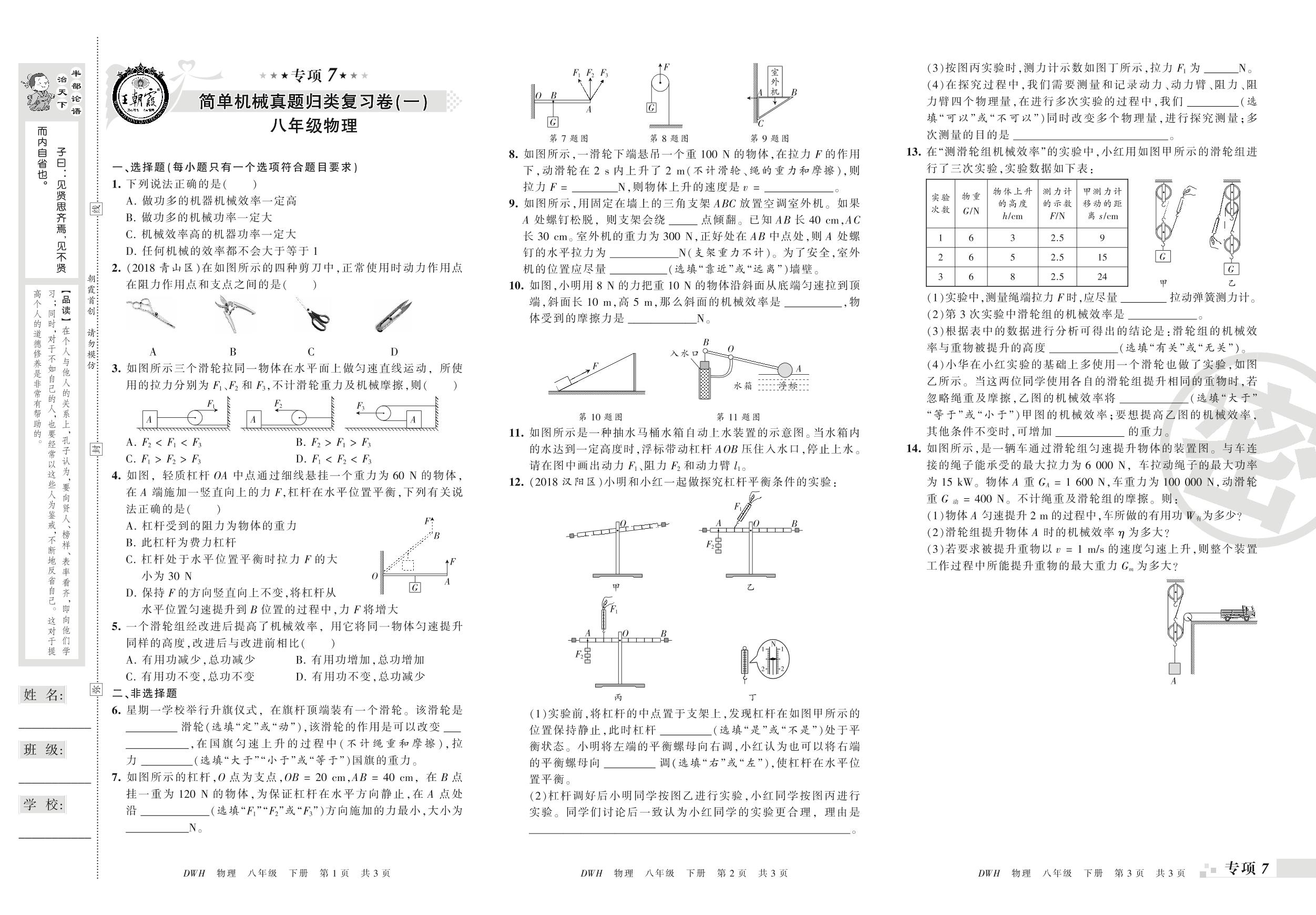 王朝霞期末专项卷——简单机械真题归类复习(一)、简单机械真题归类复习(二)八年级下册物理(人教版)_R210810175230【0】