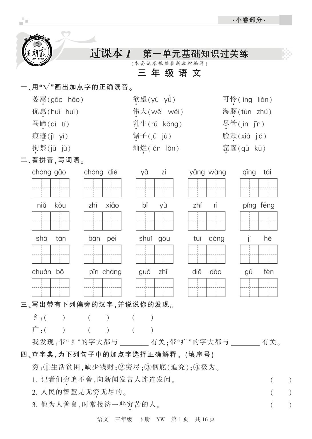 王朝霞期末小卷三年级下册语文(语文版)_R21080193829【0】