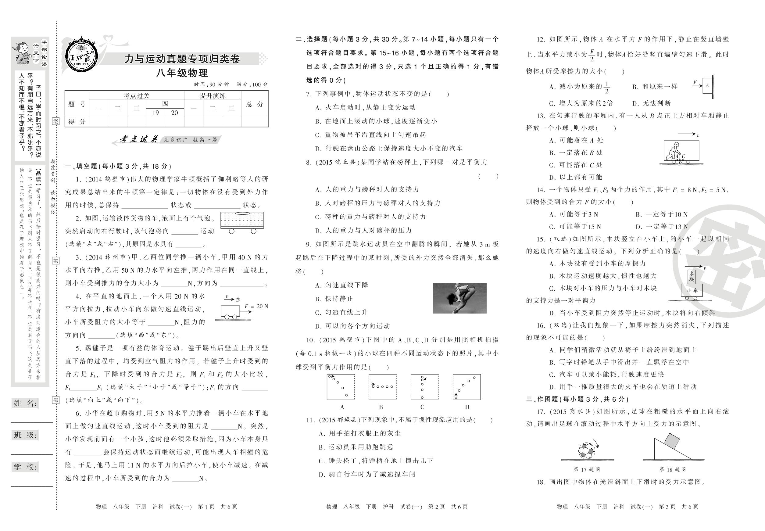 王朝霞期末专项卷八年级下册物理(沪科版)_R210810175517【1】