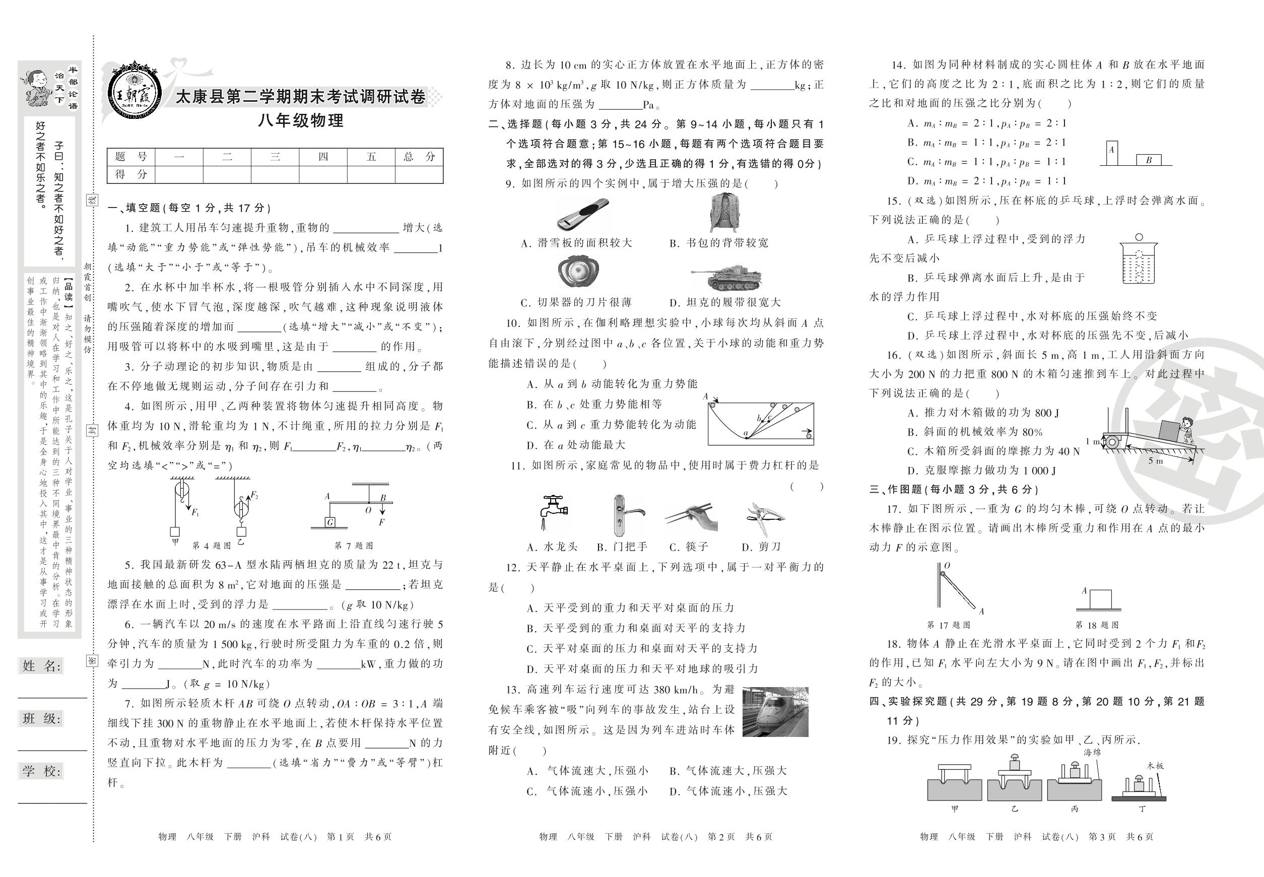 2015-2016学年第二学期周口市太康县八年级物理试卷(沪科版)【8】