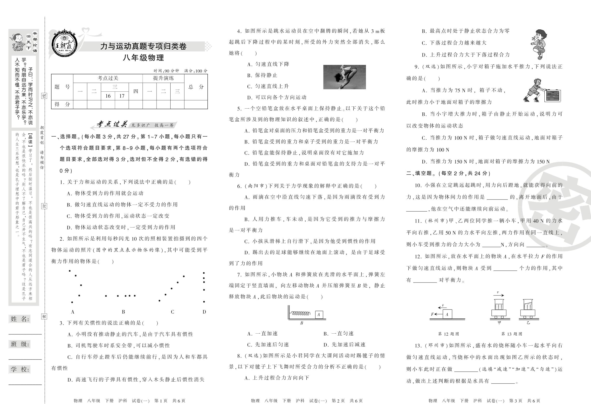 王朝霞期末专项卷八年级下册物理(沪科版)_R210810175659【1】