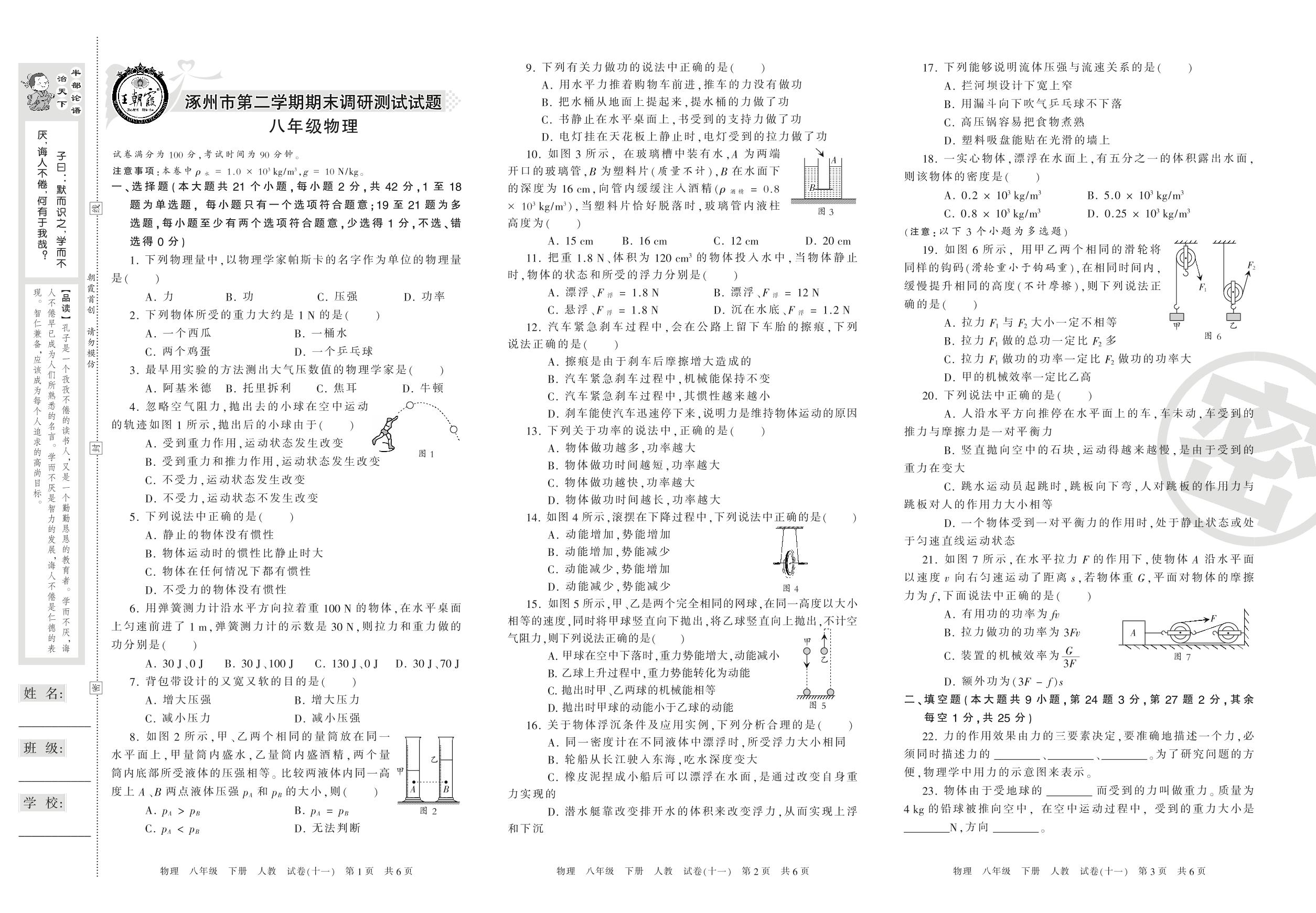 2015-2016学年第二学期涿州市八年级物理试卷(人教版)【11】