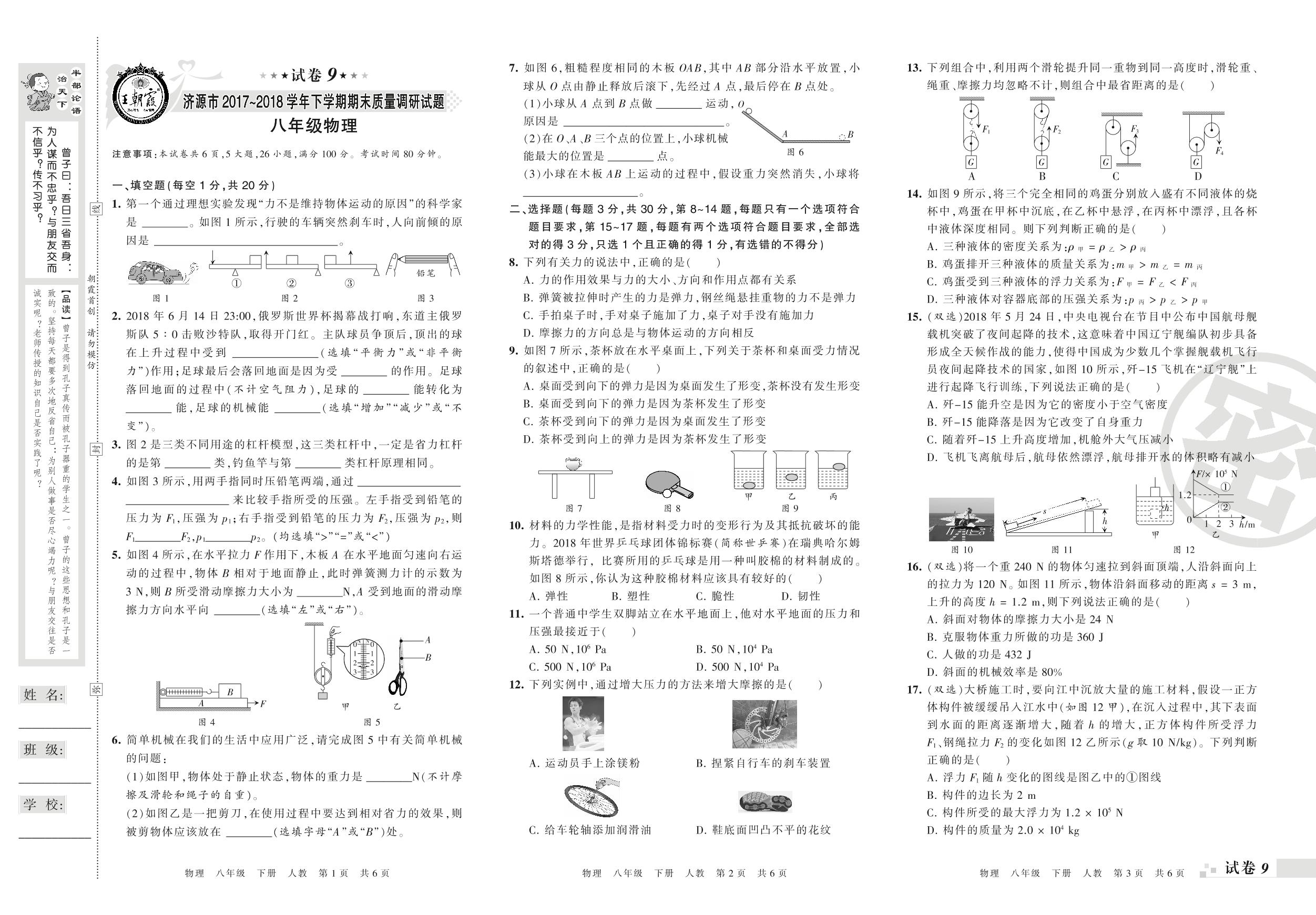 2017-2018学年第二学期济源市八年级物理试卷(人教版)【9】