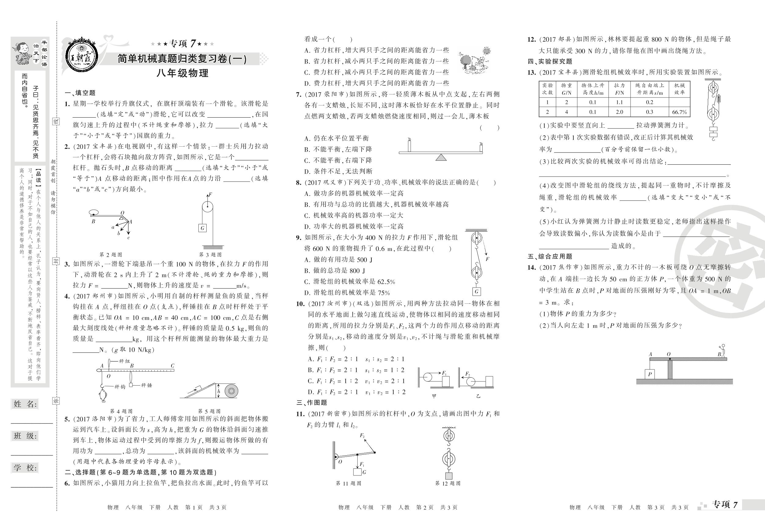 王朝霞期末专项卷——简单机械真题归类复习(一)、简单机械真题归类复习(二)八年级下册物理(人教版)_R210810180945【0】