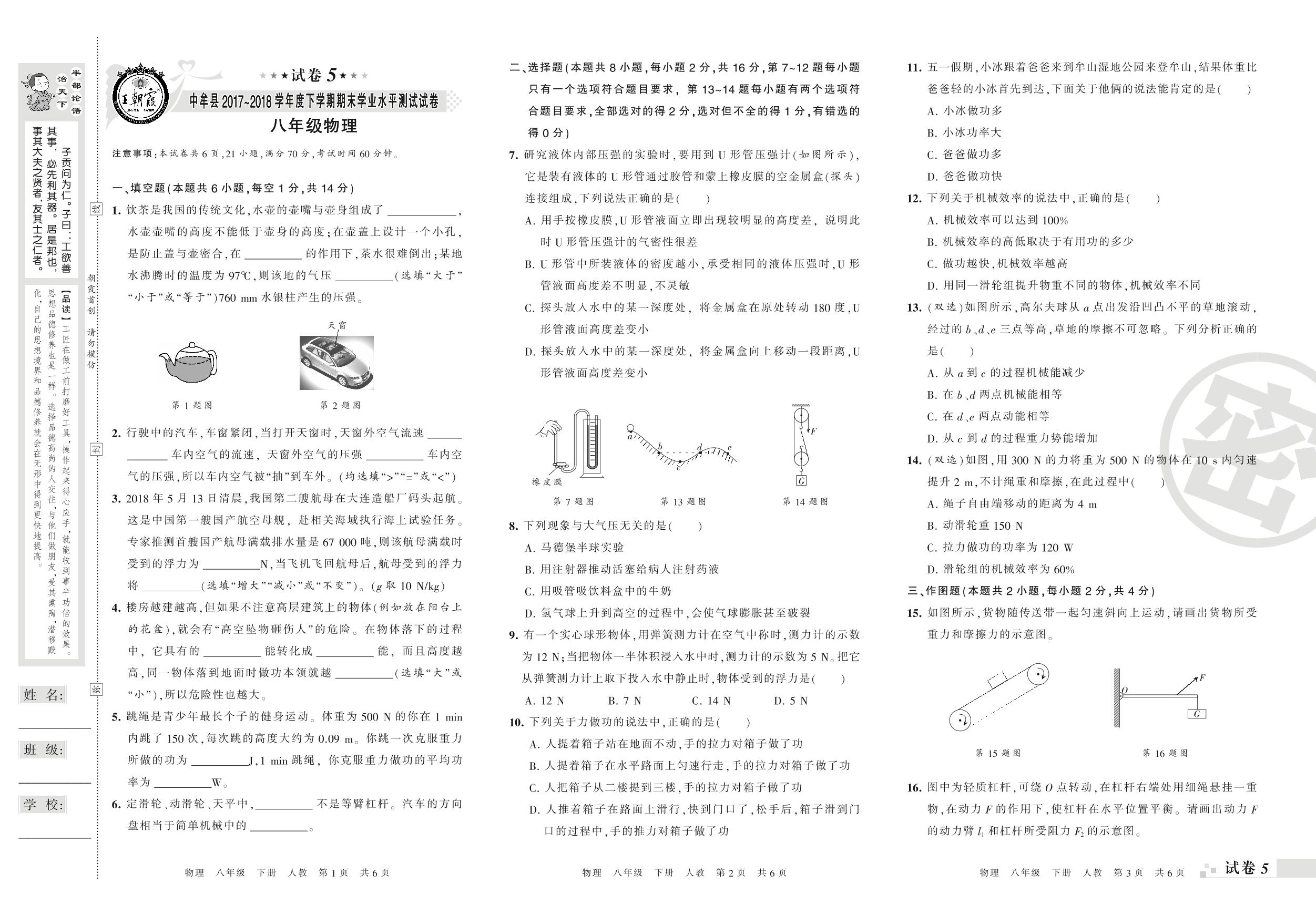 2017-2018学年第二学期郑州市中牟县八年级物理试卷(人教版)【5】