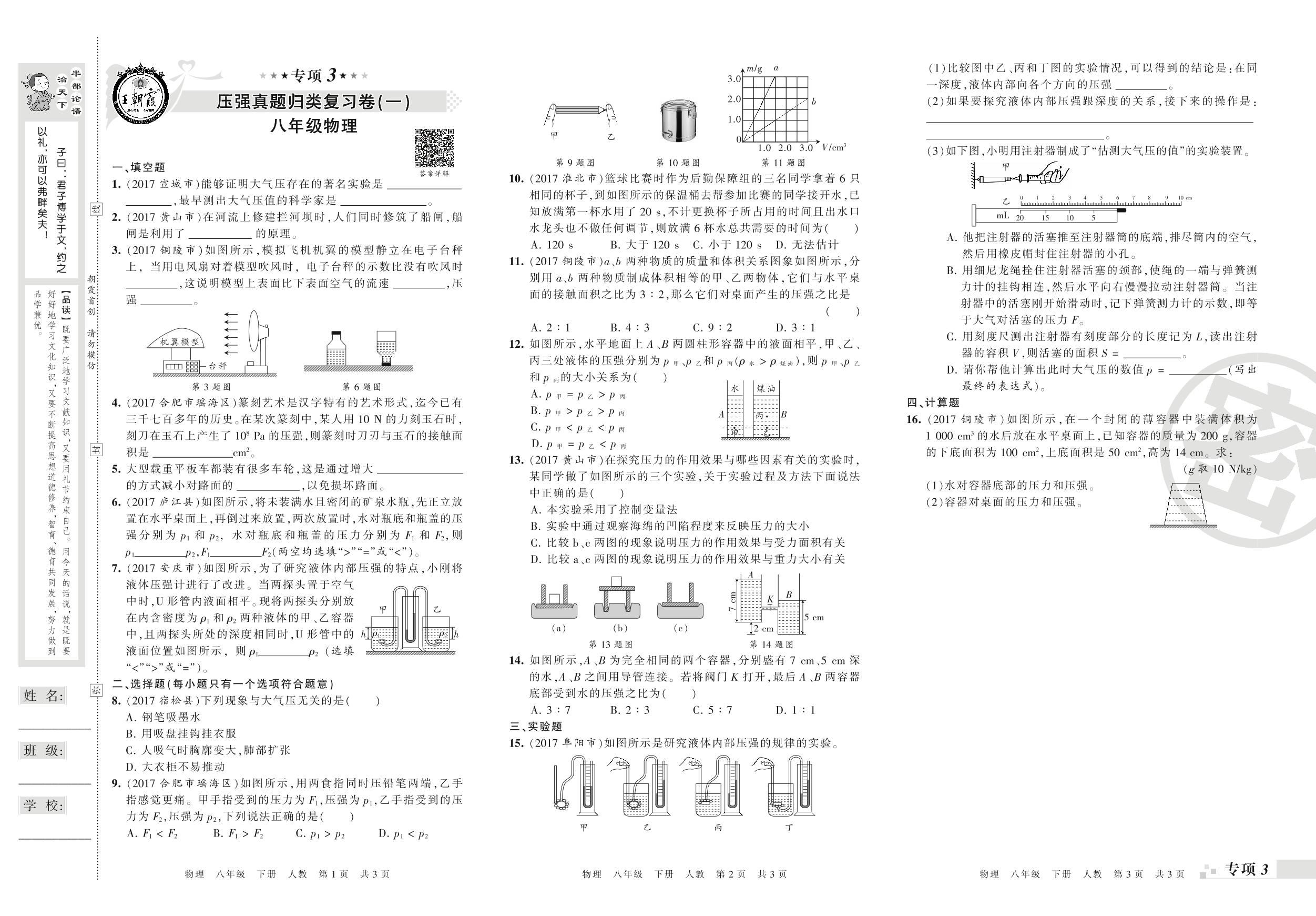 王朝霞期末专项卷——压强真题归类复习(一)、压强真题归类复习(二)八年级下册物理(人教版)【0】