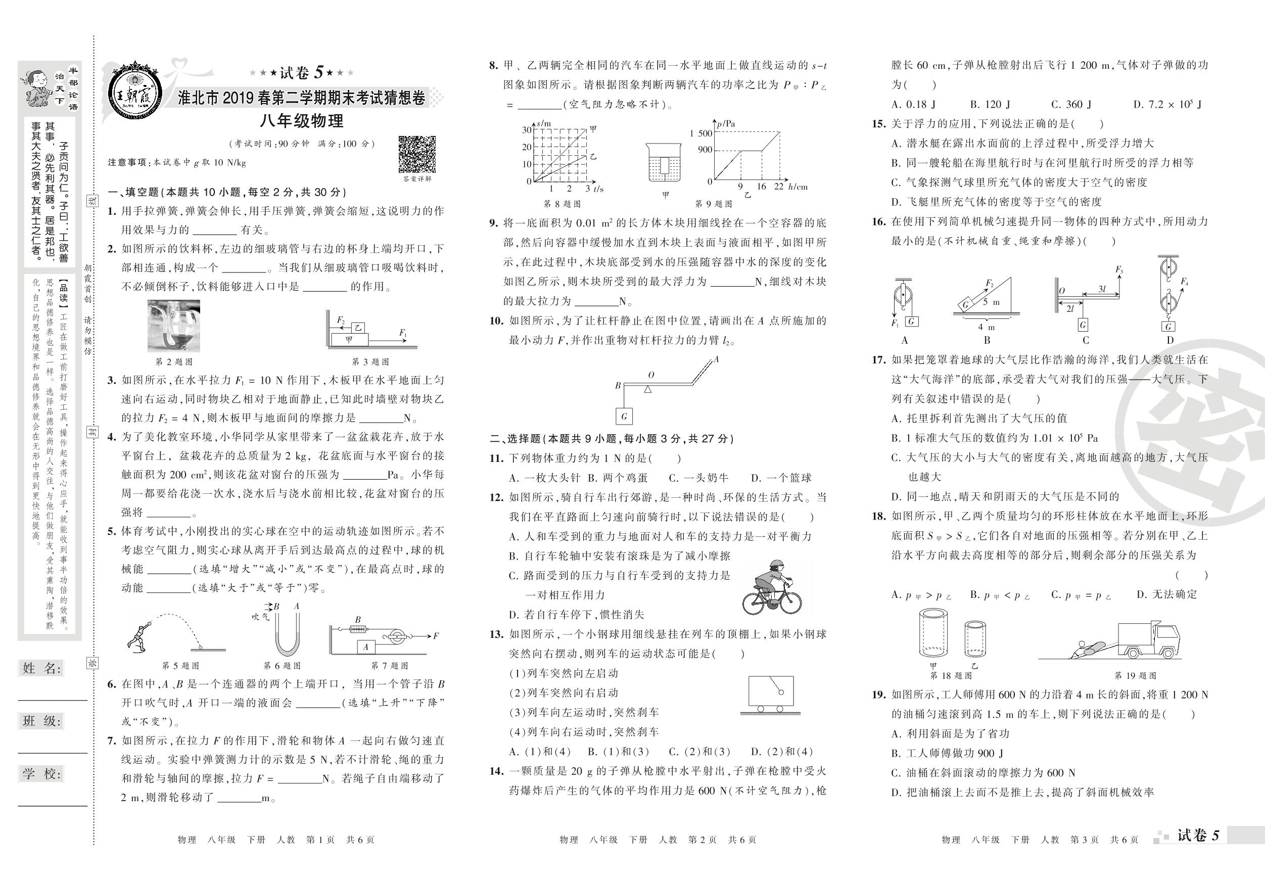 2019春第二学期淮北市八年级物理试卷(人教版)【5】