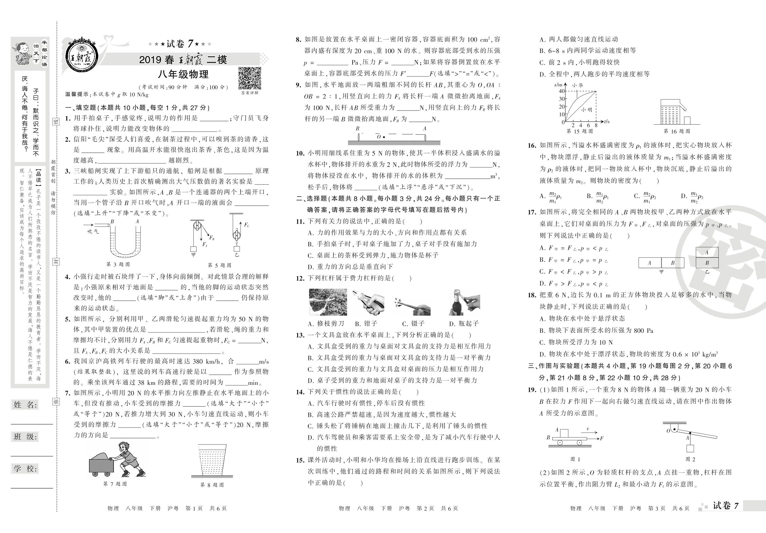 王朝霞期末模拟卷八年级下册物理(沪粤版)_R210810181457【7】