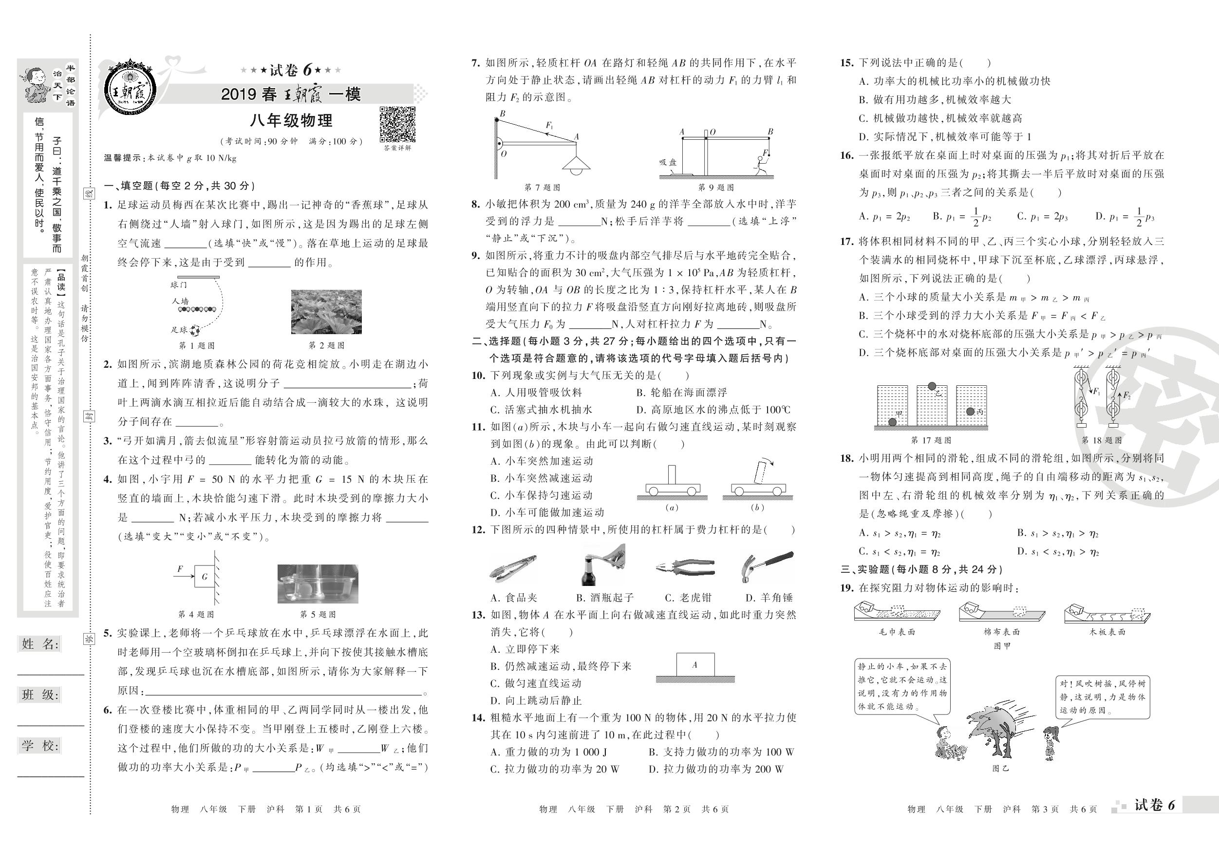 2018-2019学年第二学期王朝霞期末模拟卷八年册物理(沪科版)_R210810181620【6】