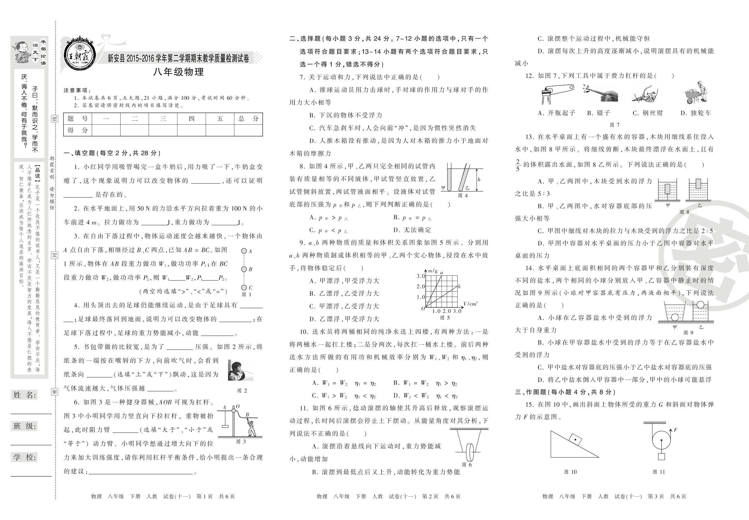 2015-2016学年第二学期洛阳市新安县八年级物理试卷(人教版)【11】