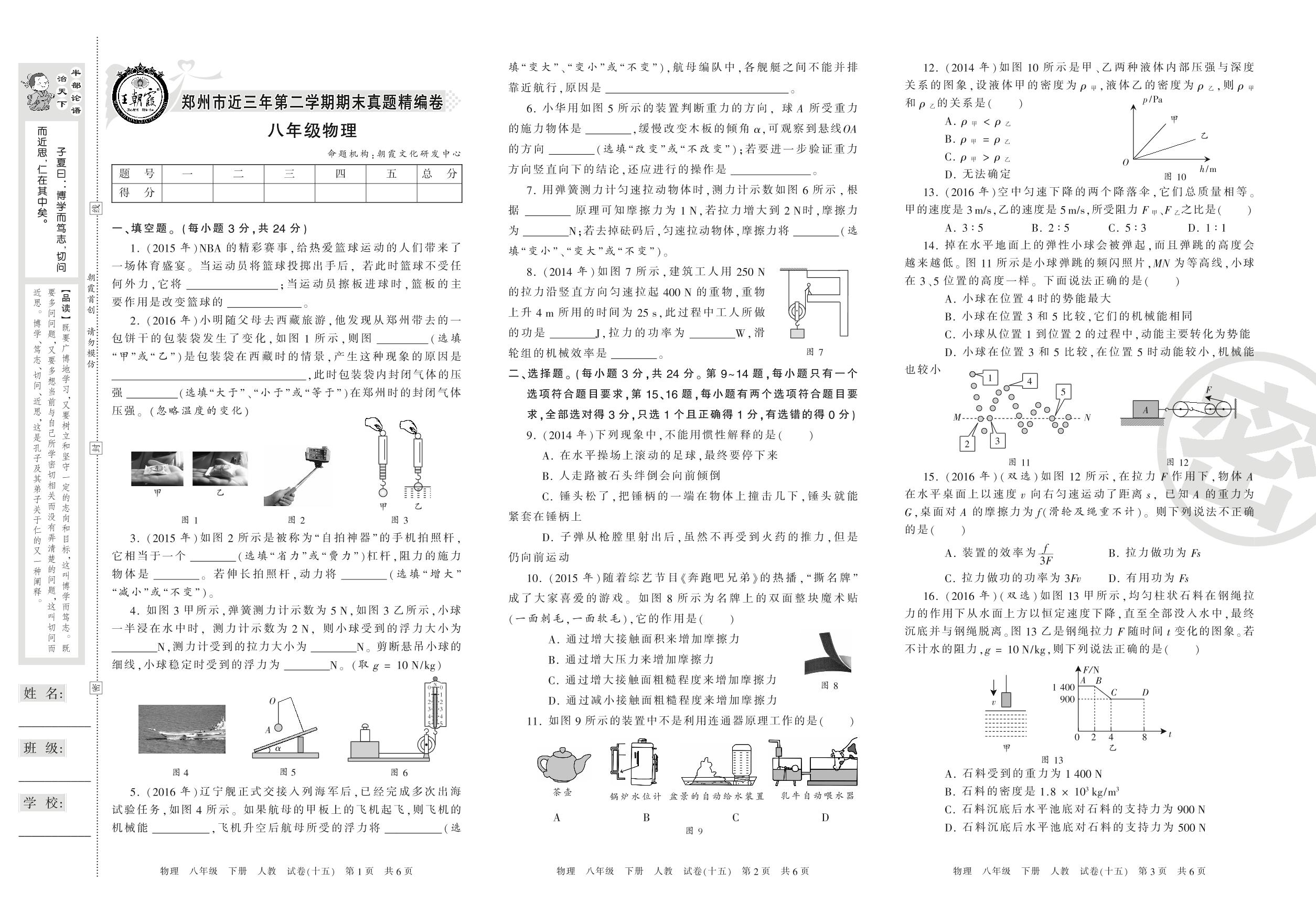 郑州市近三年精编八年级下册物理(人教版)【15】