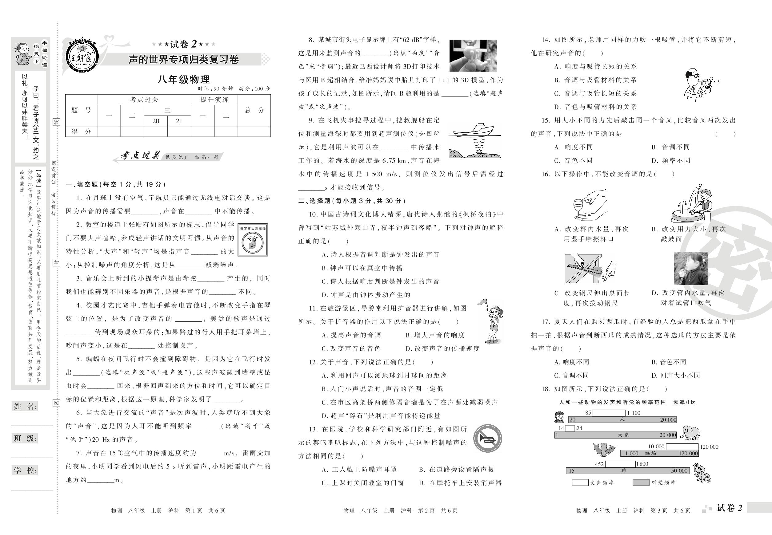 王朝霞期末专项卷八年级上册物理(沪科版)_R210810183457【2】