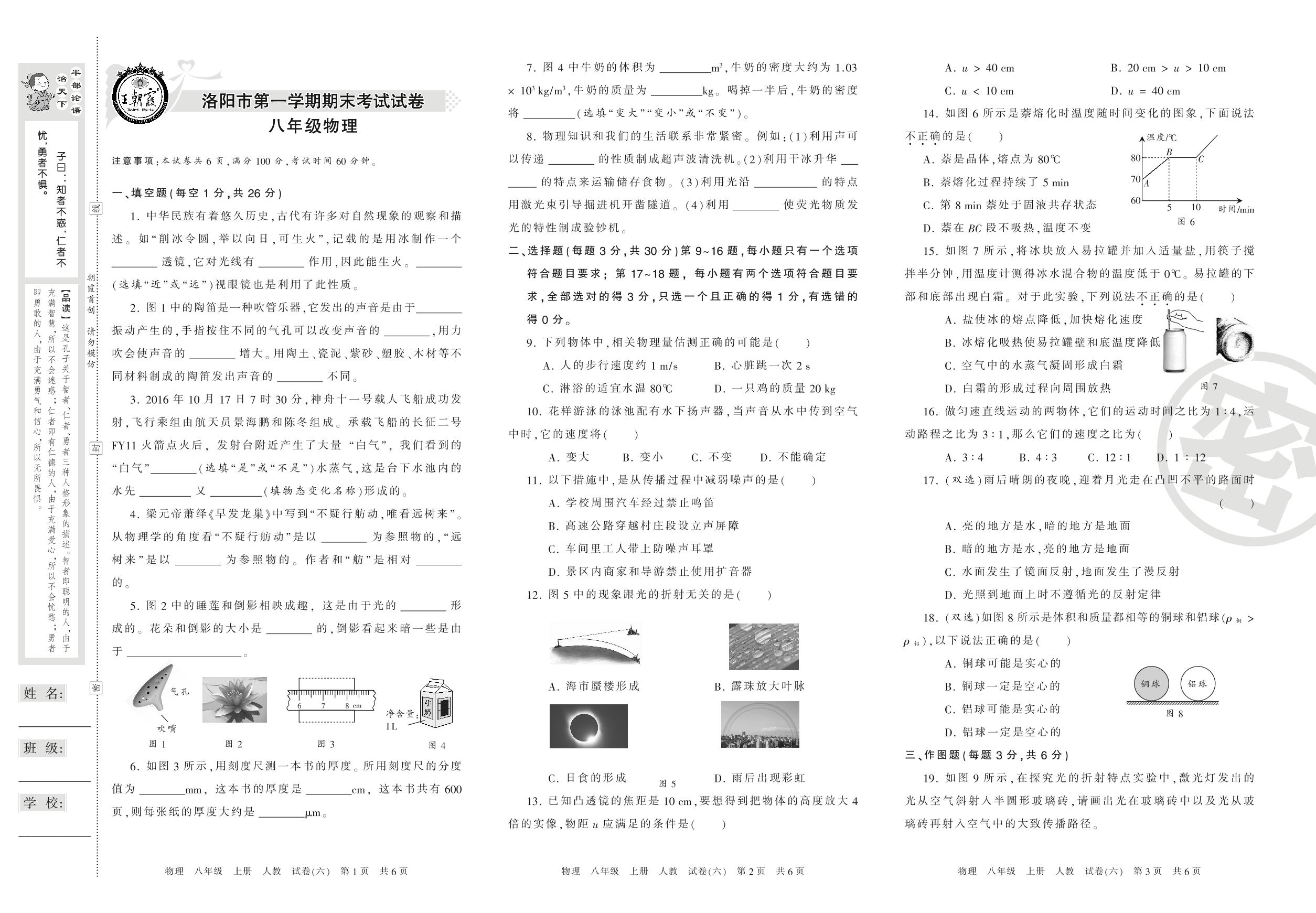 2016-2017学年第一学期洛阳市八年级物理试卷(人教版)【6】