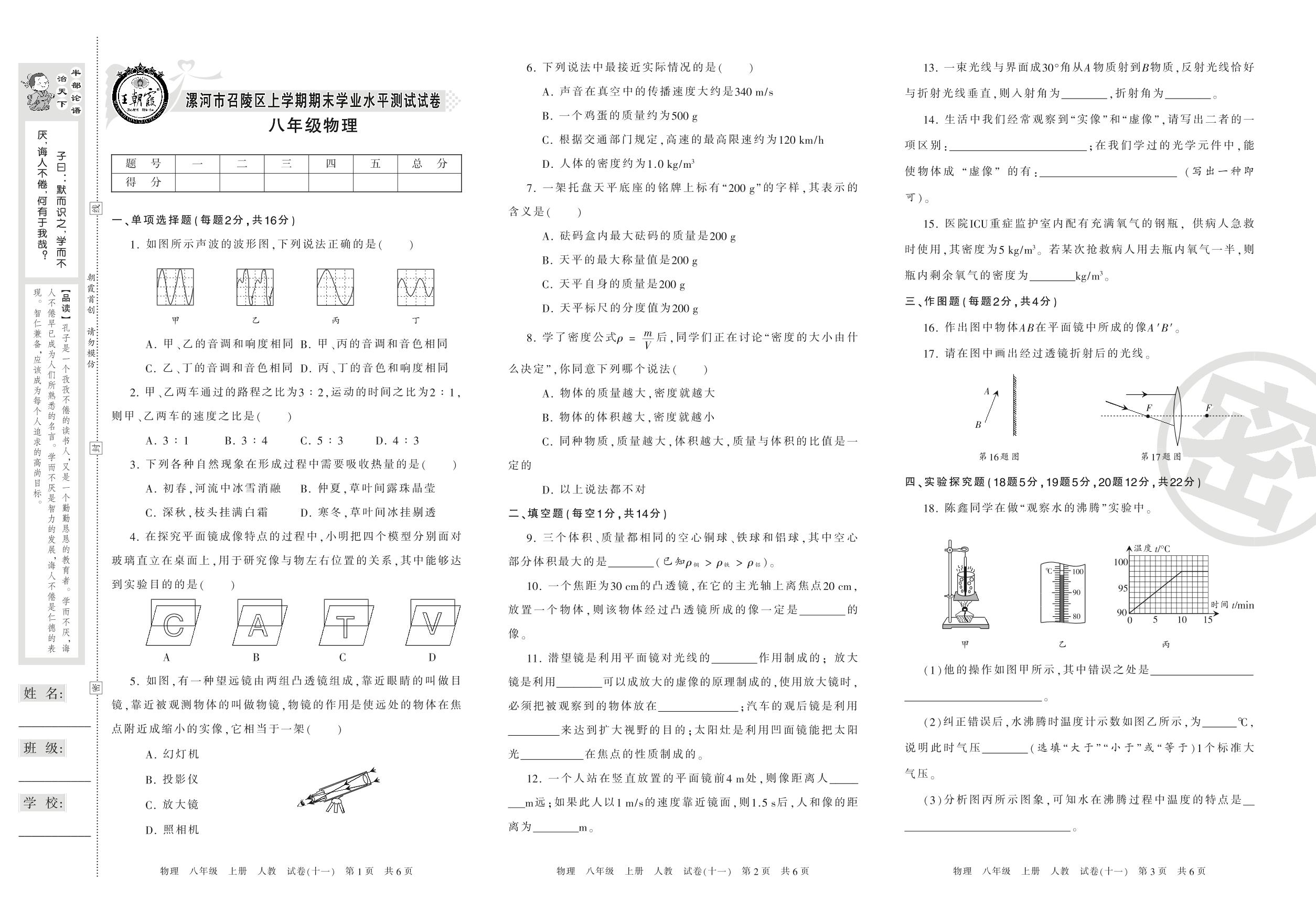 八年级物理人教版上册期末卷