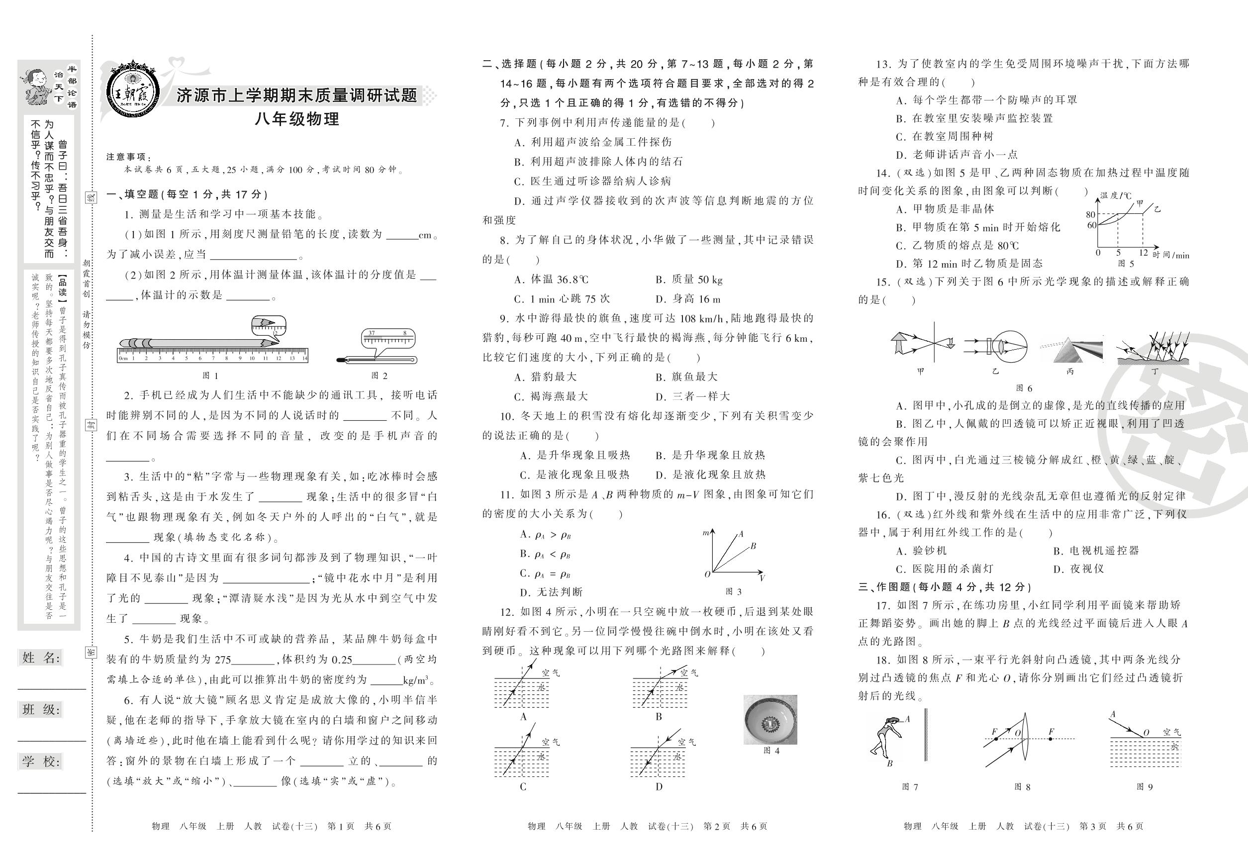 2016-2017学年第一学期济源市八年级物理试卷(人教版)【13】