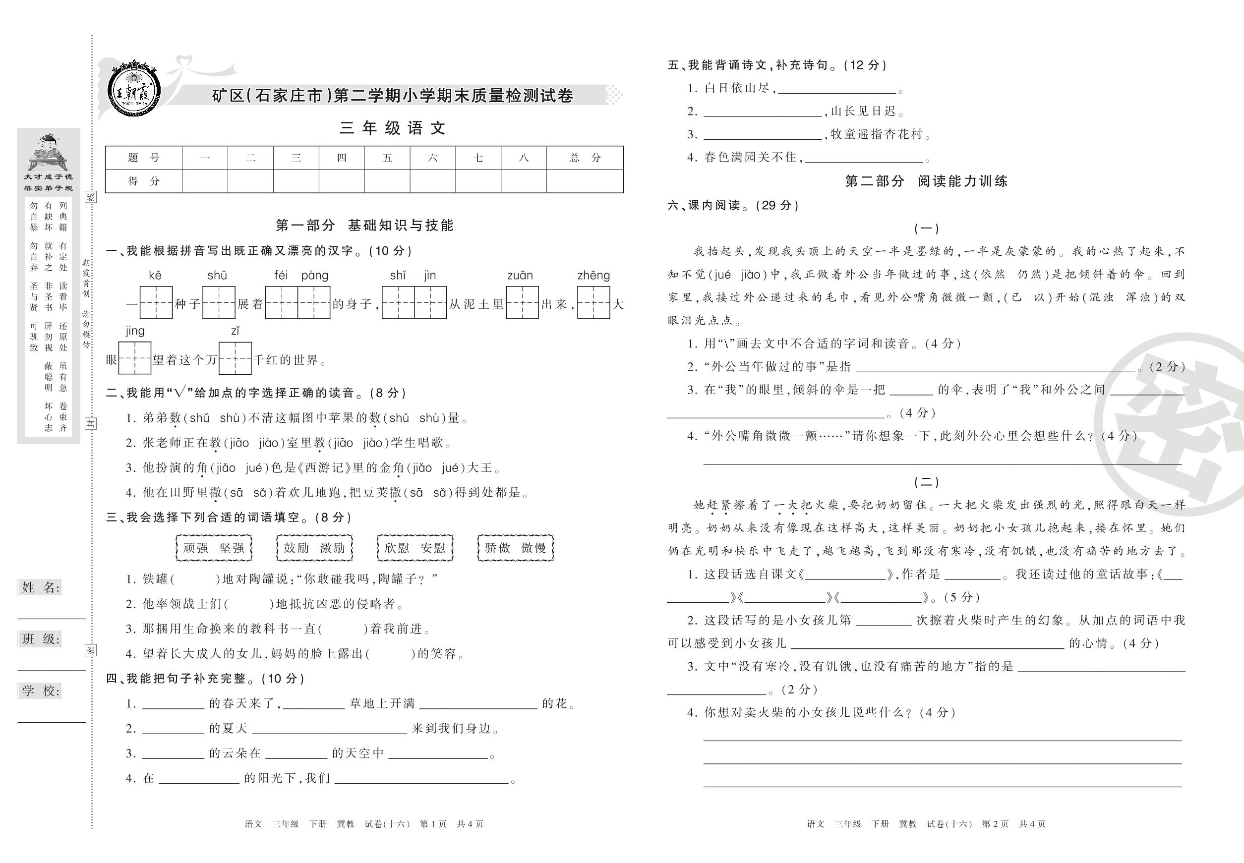 2015-2016学年第二学期矿区(石家庄市)三年级语文试卷(冀教版)【16】