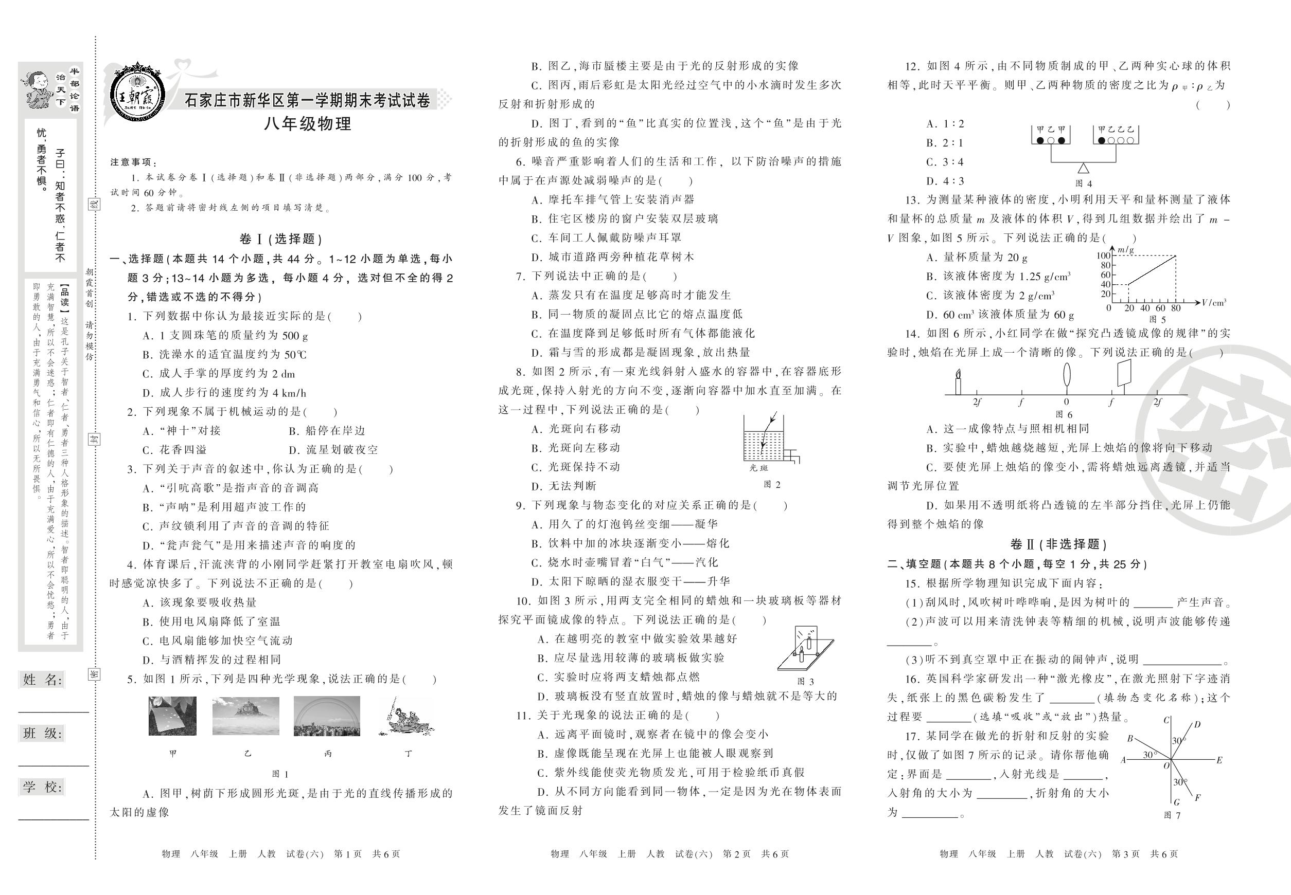 2016-2017学年第一学期石家庄市新华区八年级物理试卷(人教版)【6】