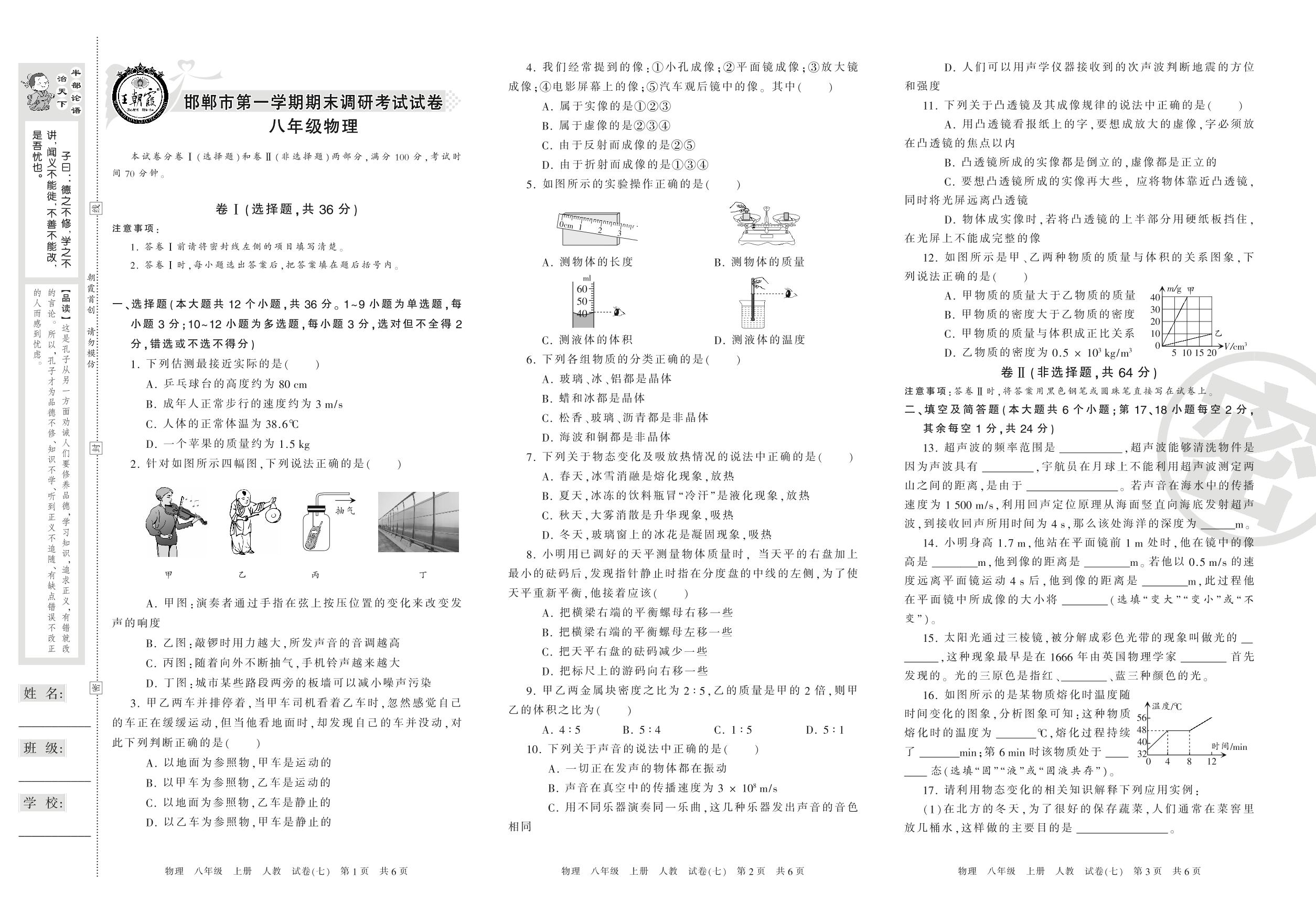 2016-2017学年第一学期邯郸市八年级物理试卷(人教版)【7】