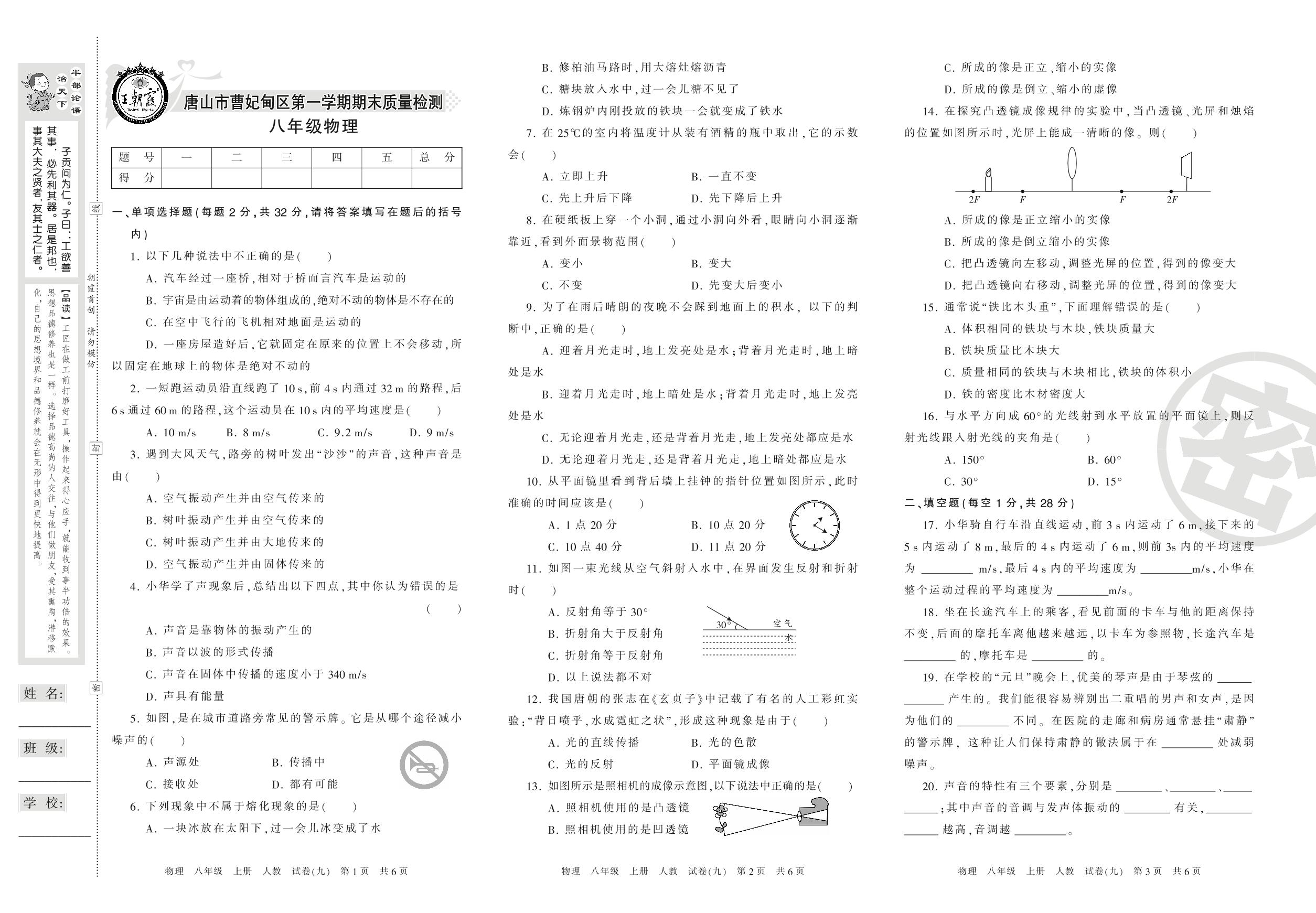 2016-2017学年第一学期唐山市曹妃甸区八年级物理试卷(人教版)【9】