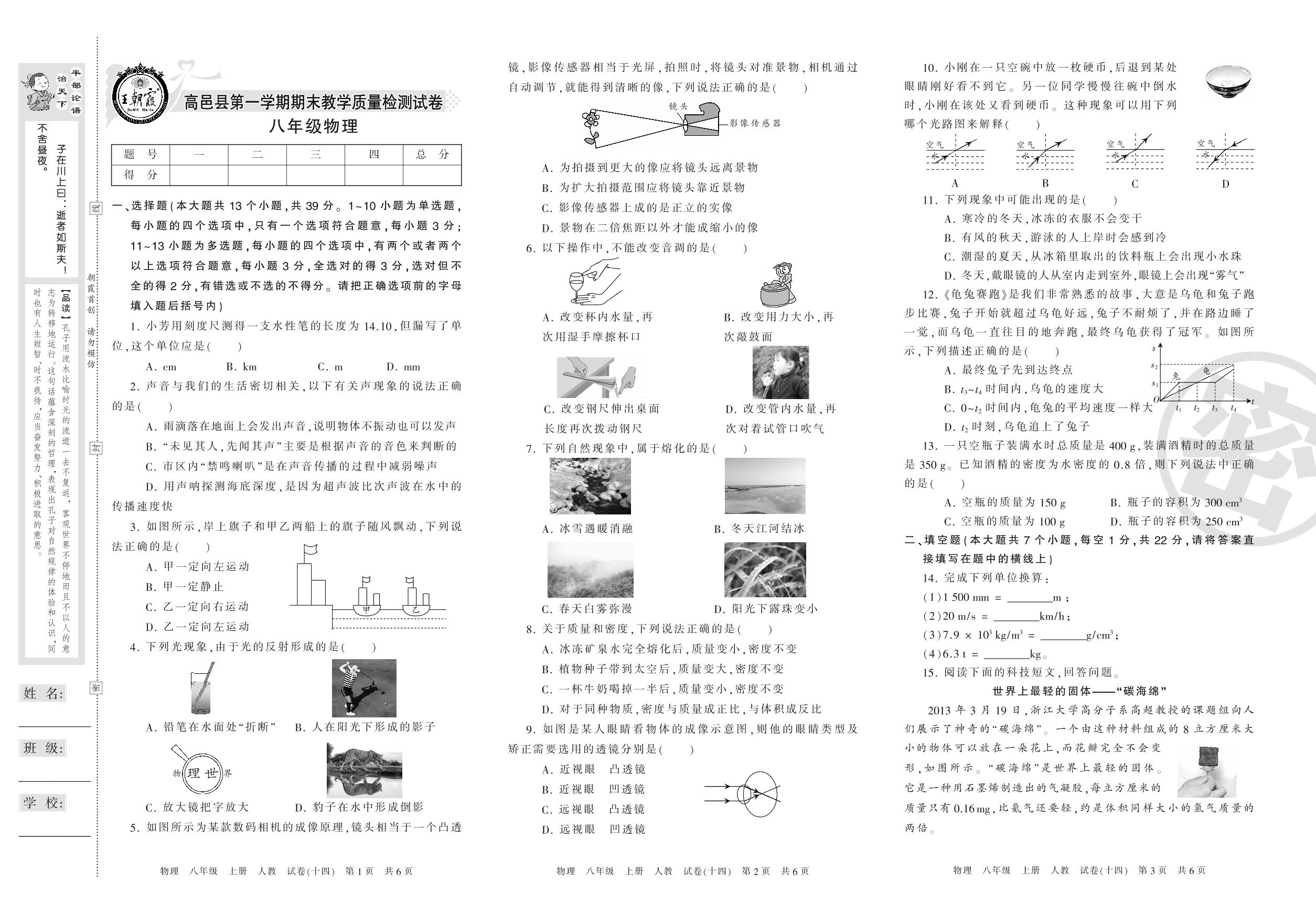 2016-2017学年第一学期石家庄市高邑县八年级物理试卷(人教版)【14】