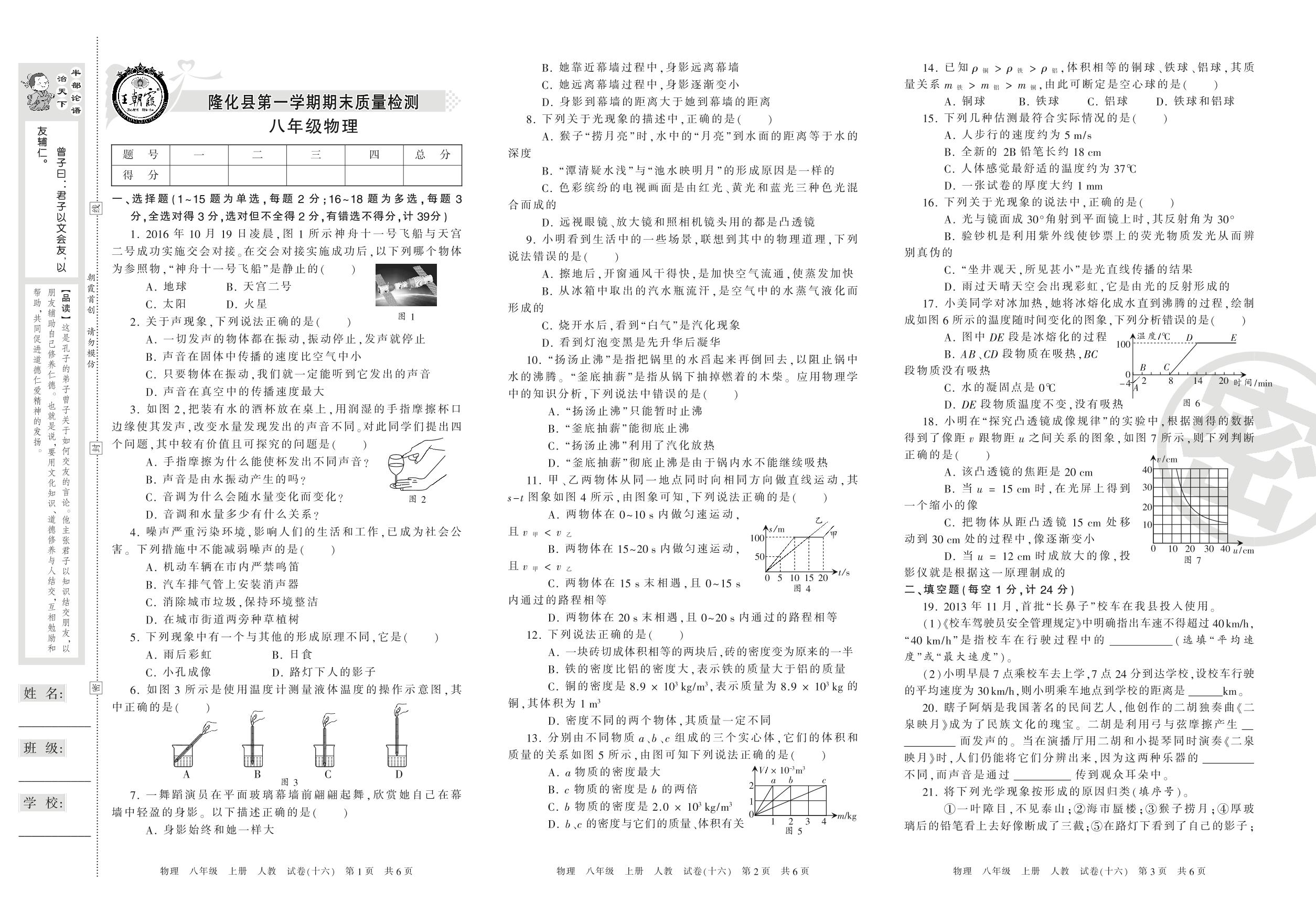 八年级物理人教版上册期末卷
