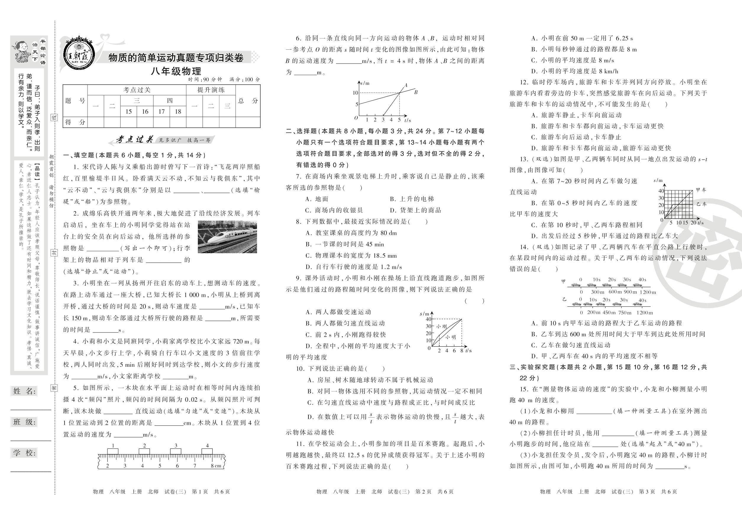 王朝霞期末专项卷八年级上册物理(北师版)【3】