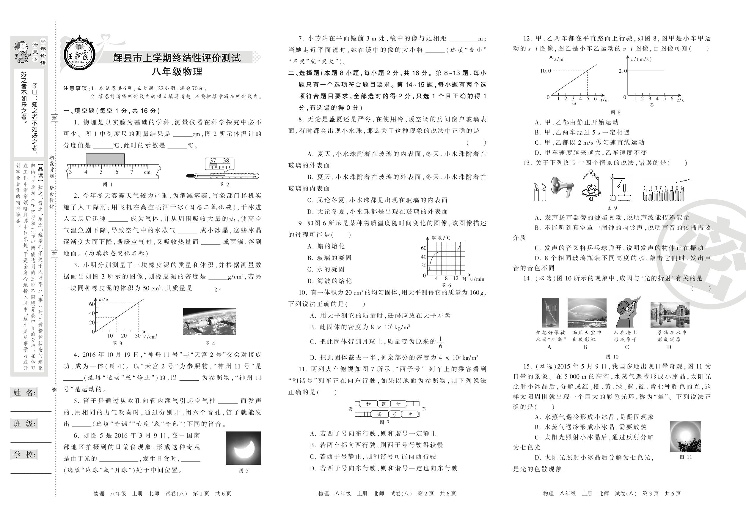 2016-2017学年第一学期辉县市八年级物理试卷(北师版)【8】
