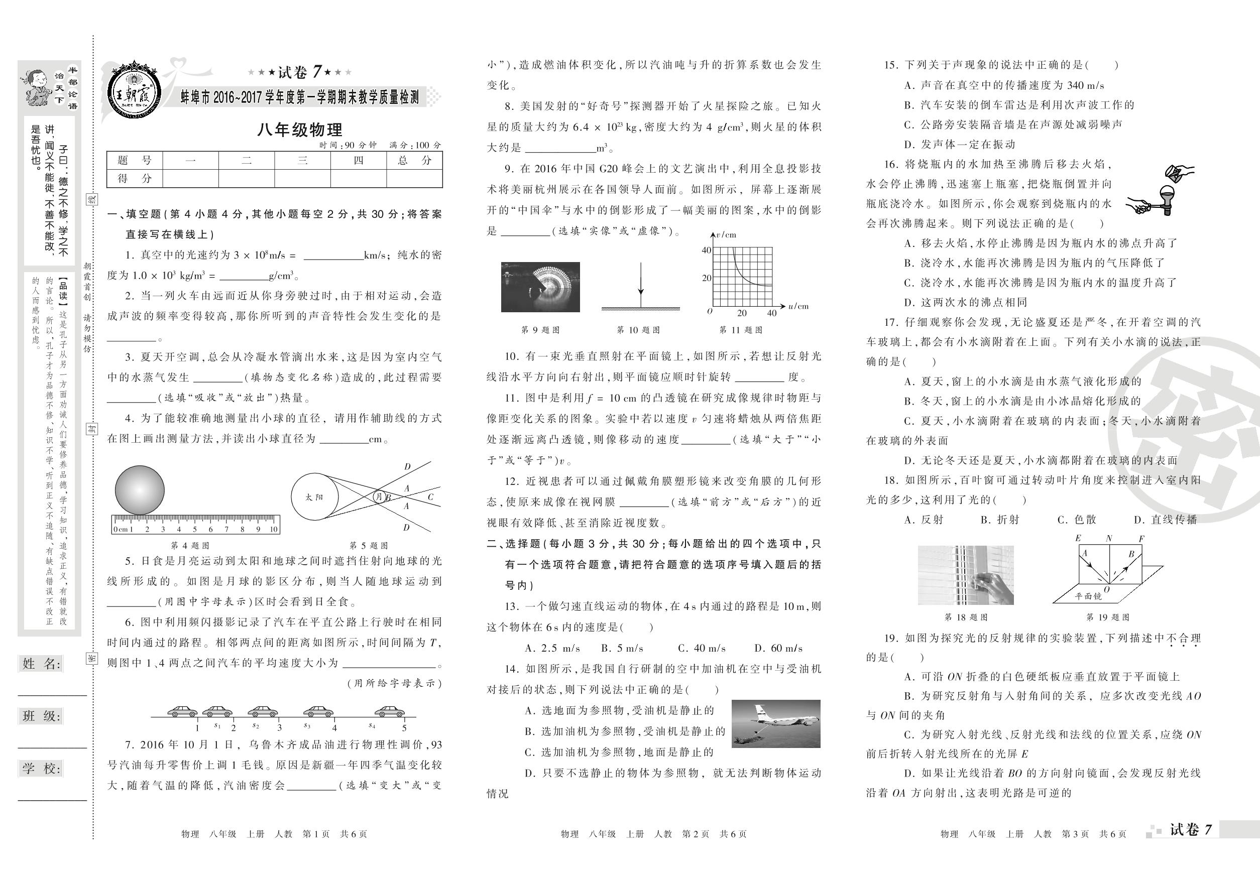 2016-2017学年第一学期蚌埠市八年级物理试卷(人教版)【7】
