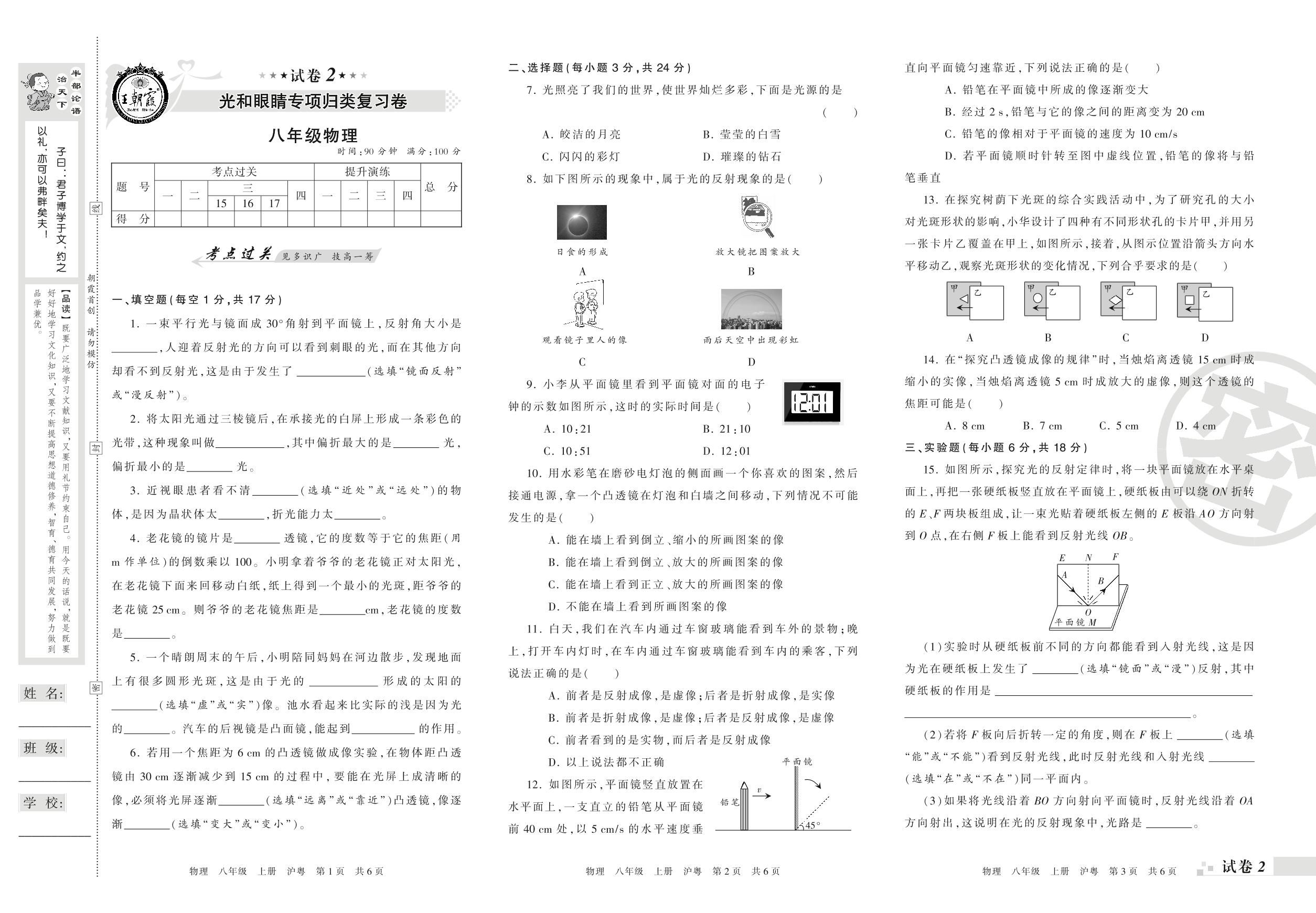 王朝霞期末专项卷八年级上册物理(沪粤版)【2】