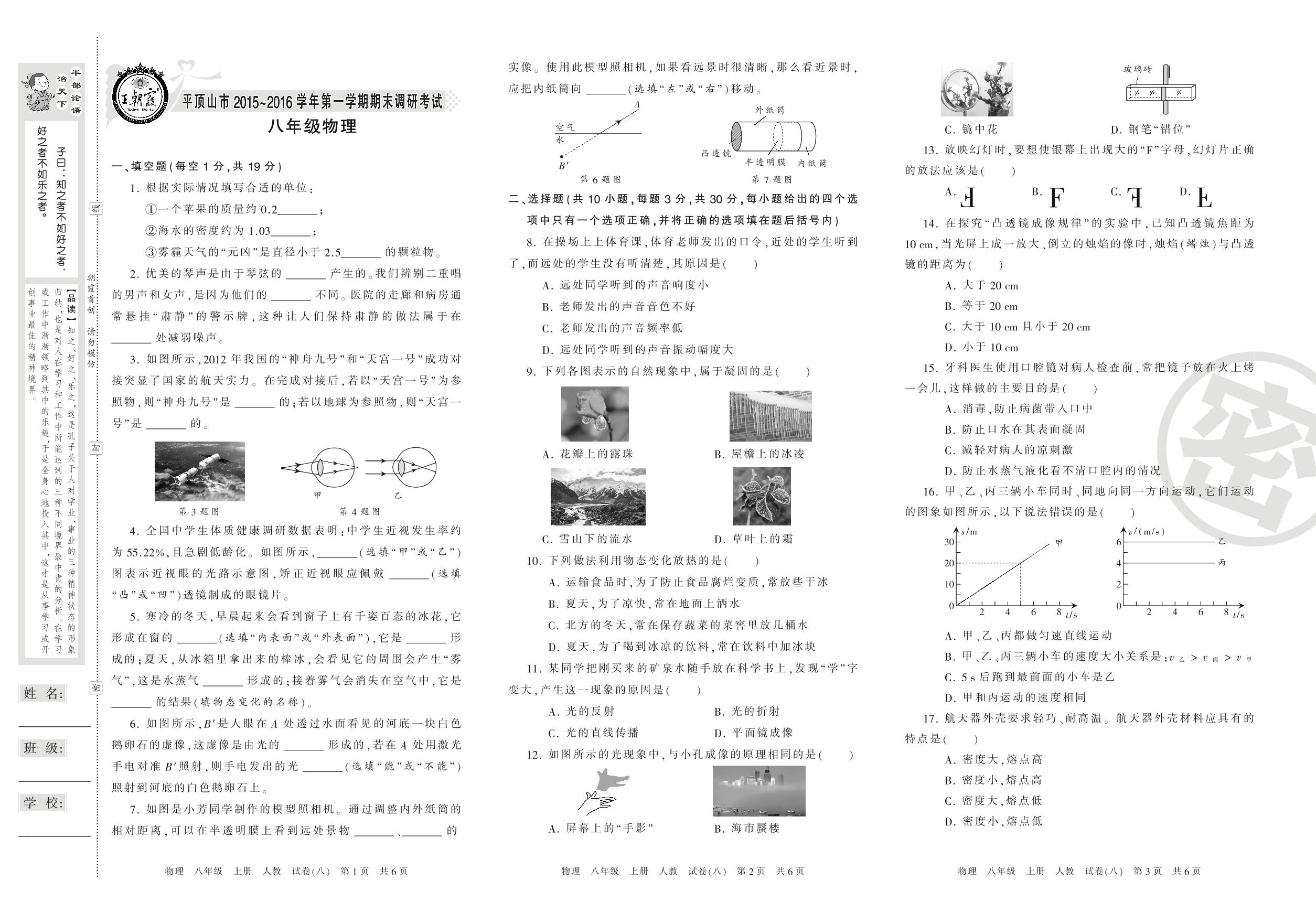 2015-2016学年第一学期平顶山市八年级物理试卷(人教版)【8】