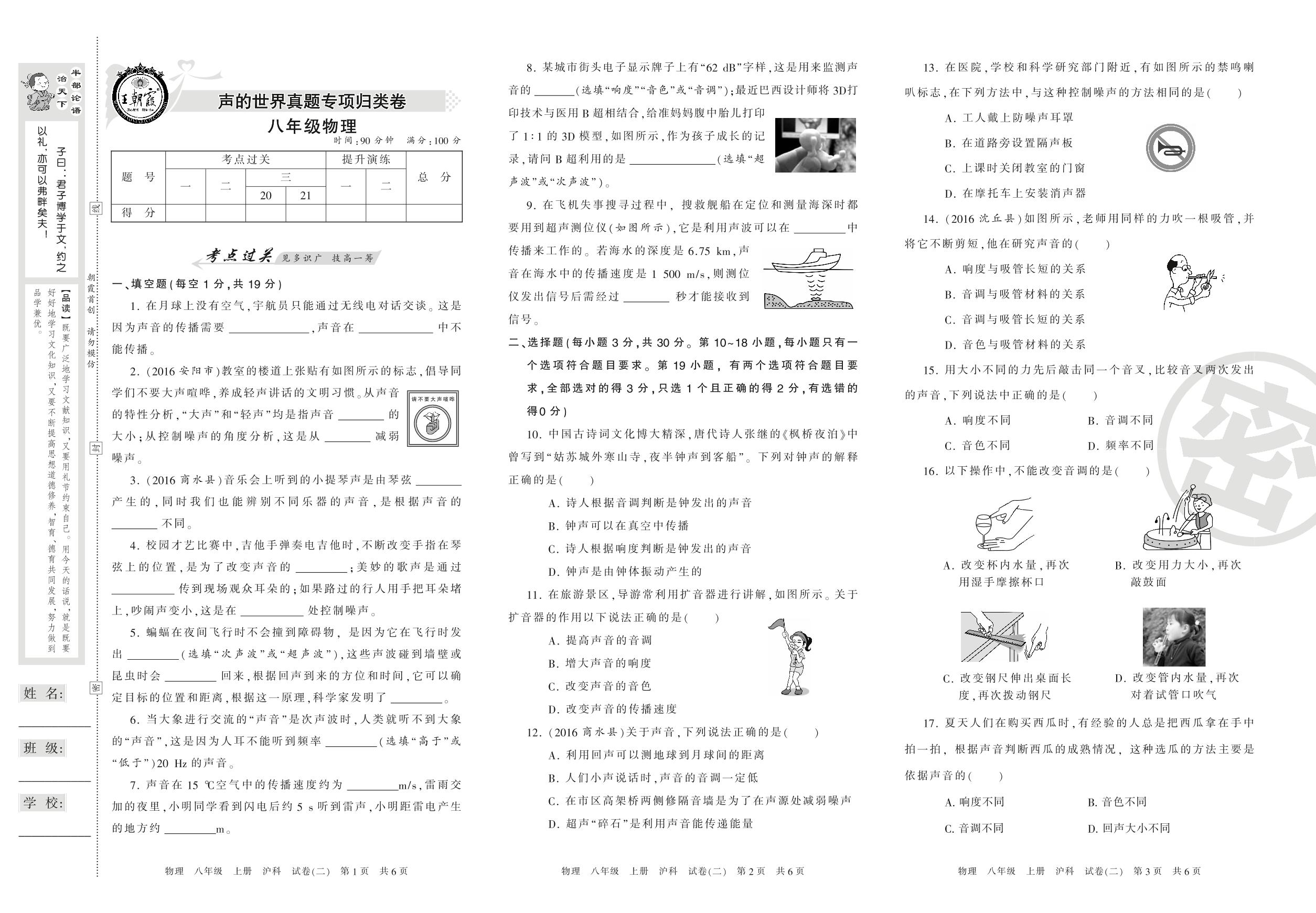 王朝霞期末专项卷八年级上册物理(沪科版)_R210810185600【2】