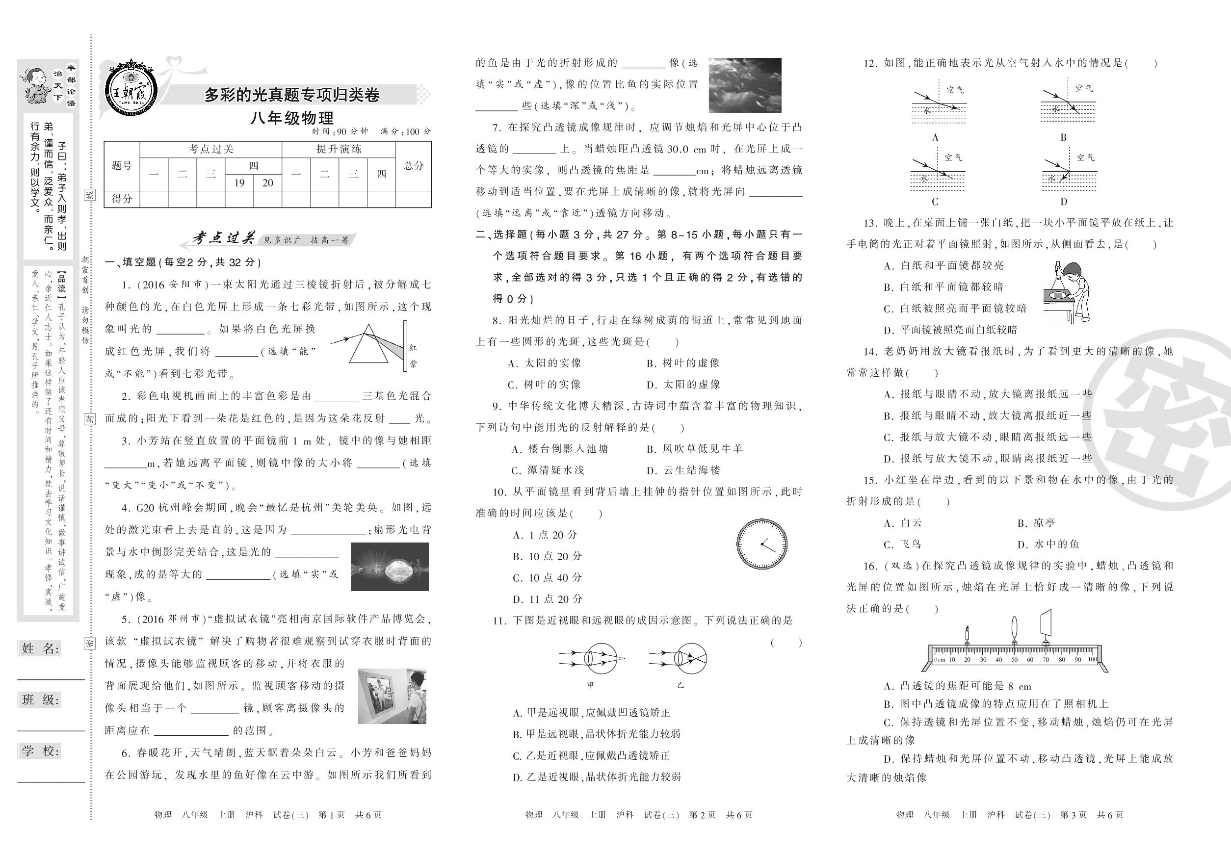 王朝霞期末专项卷八年级上册物理(沪科版)_R210810185605【3】