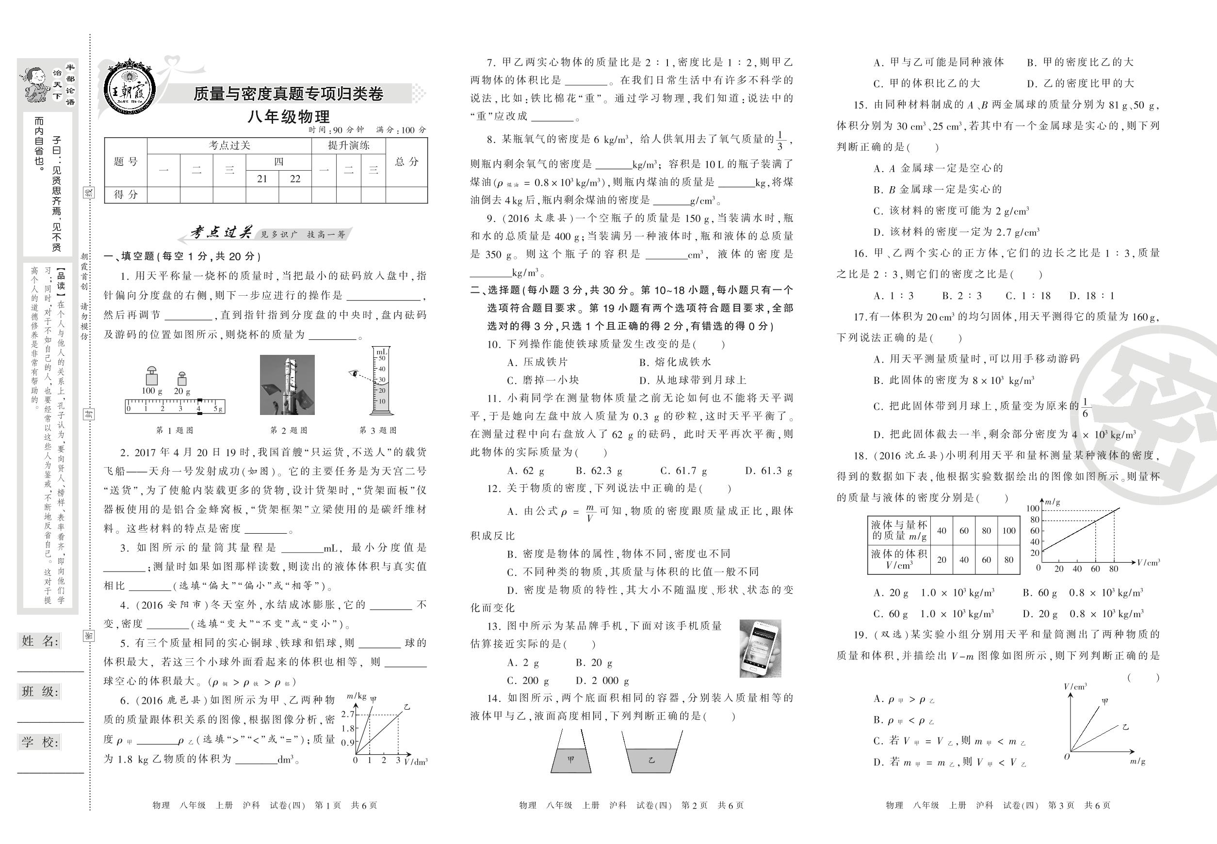 王朝霞期末专项卷八年级上册物理(沪科版)_R210810185612【4】