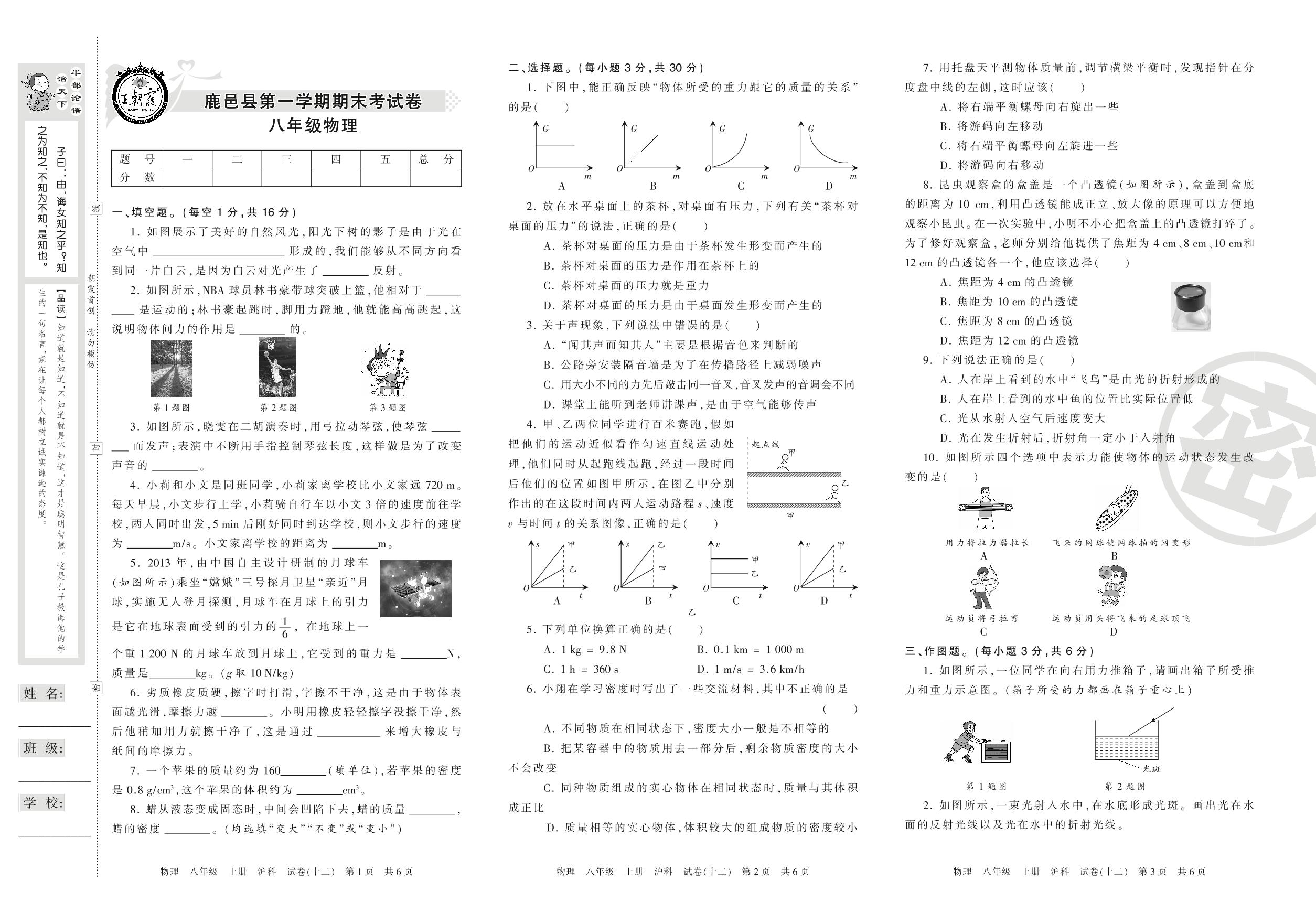 2016-2017学年第一学期周口市鹿邑县八年级物理试卷(沪科版)【12】