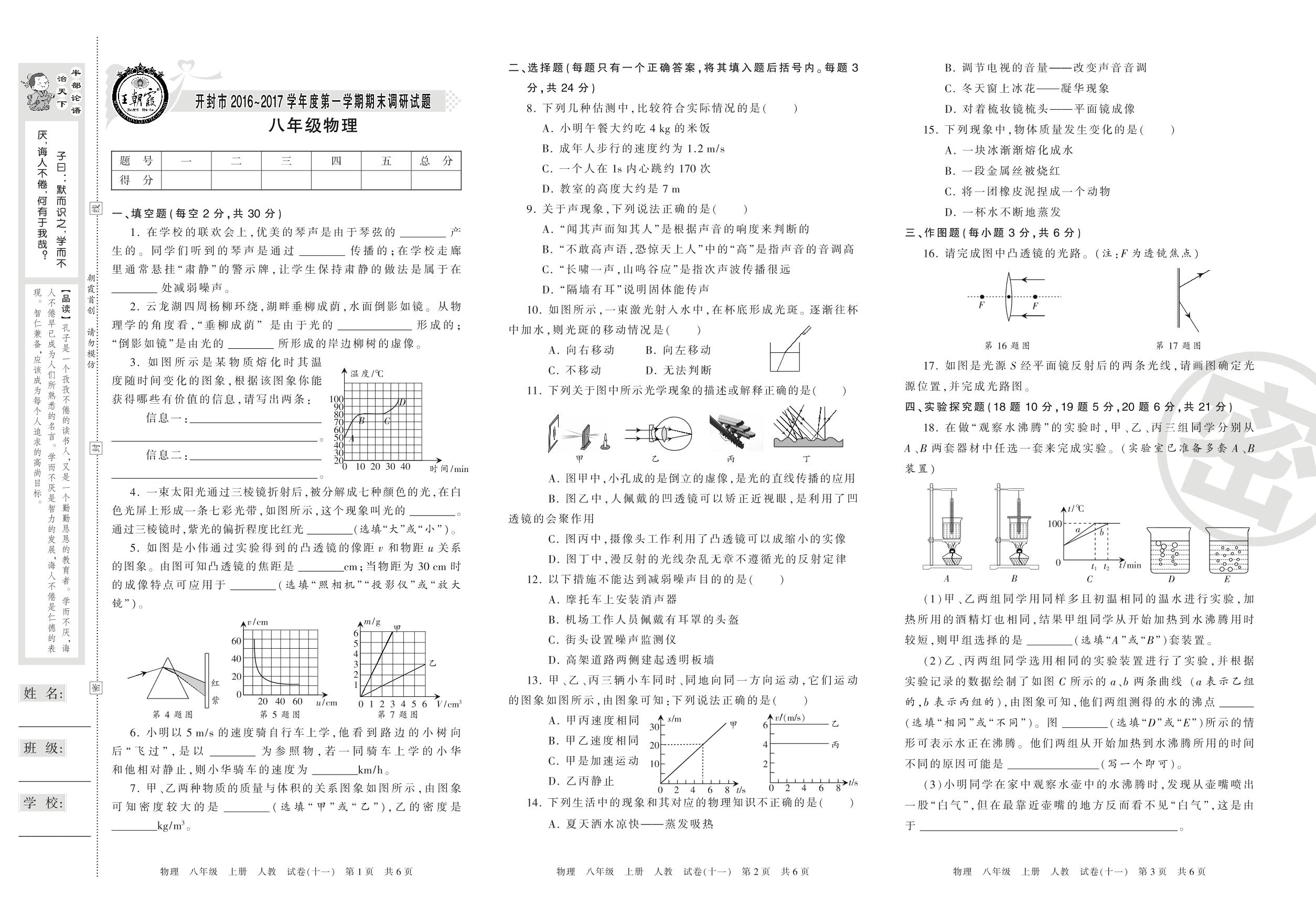 2016-2017学年第一学期开封市八年级物理试卷(人教版)【11】