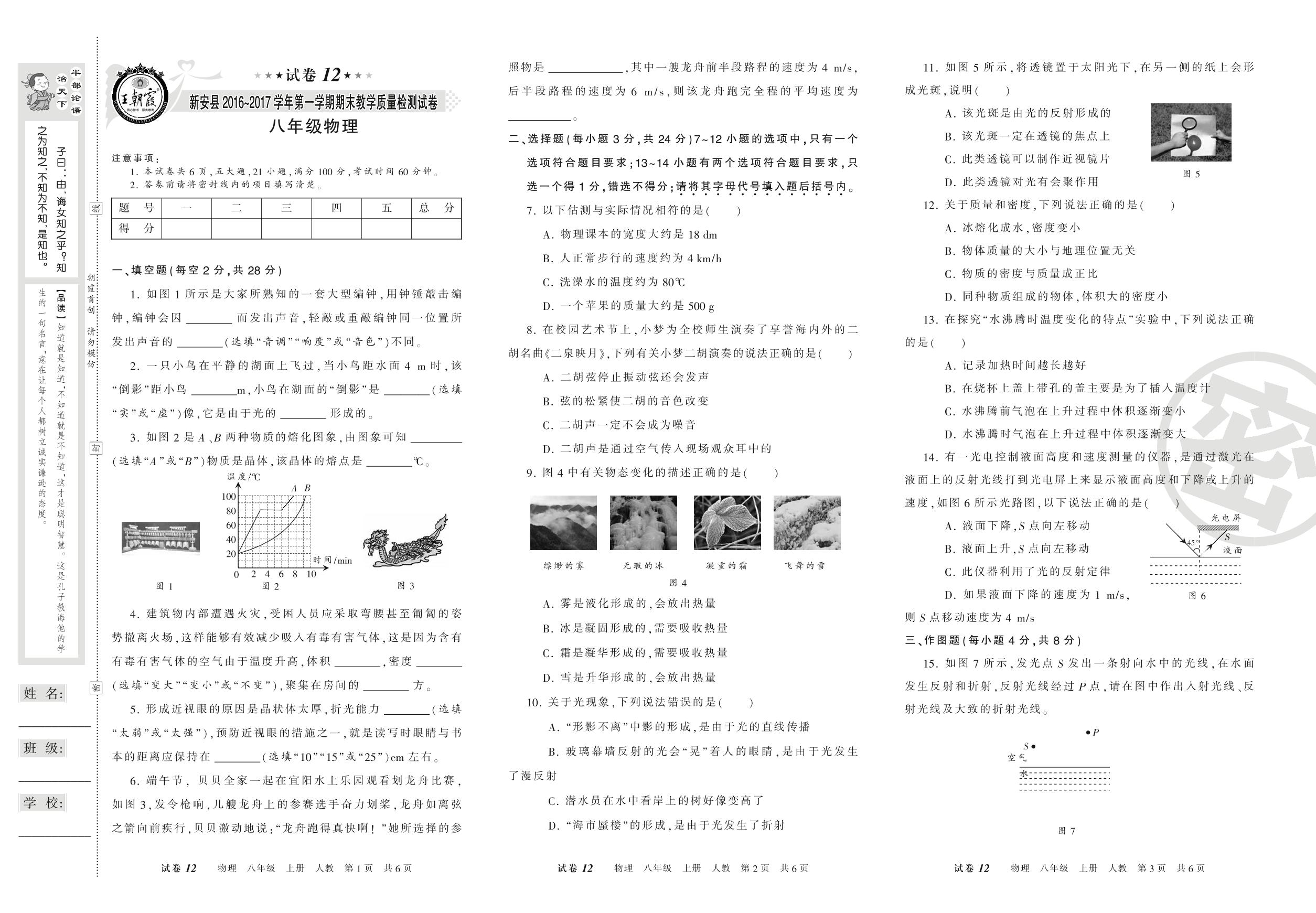 2016-2017学年第一学期新安县八年级物理试卷(人教版)【12】