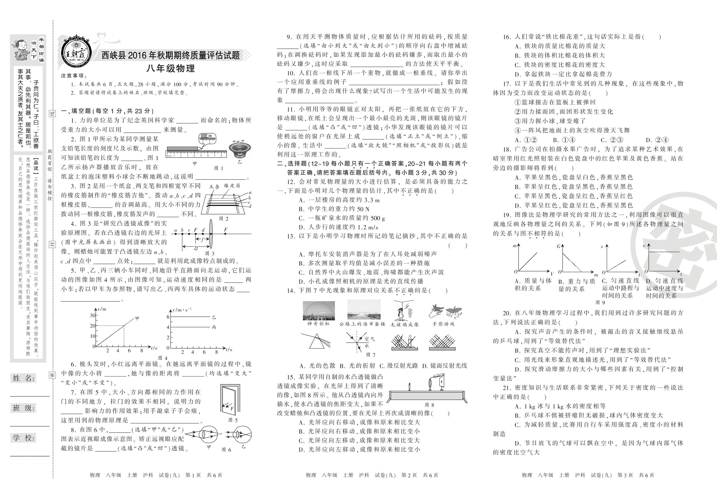 2016-2017学年第一学期南阳市西峡县八年级物理试卷(沪科版)【9】