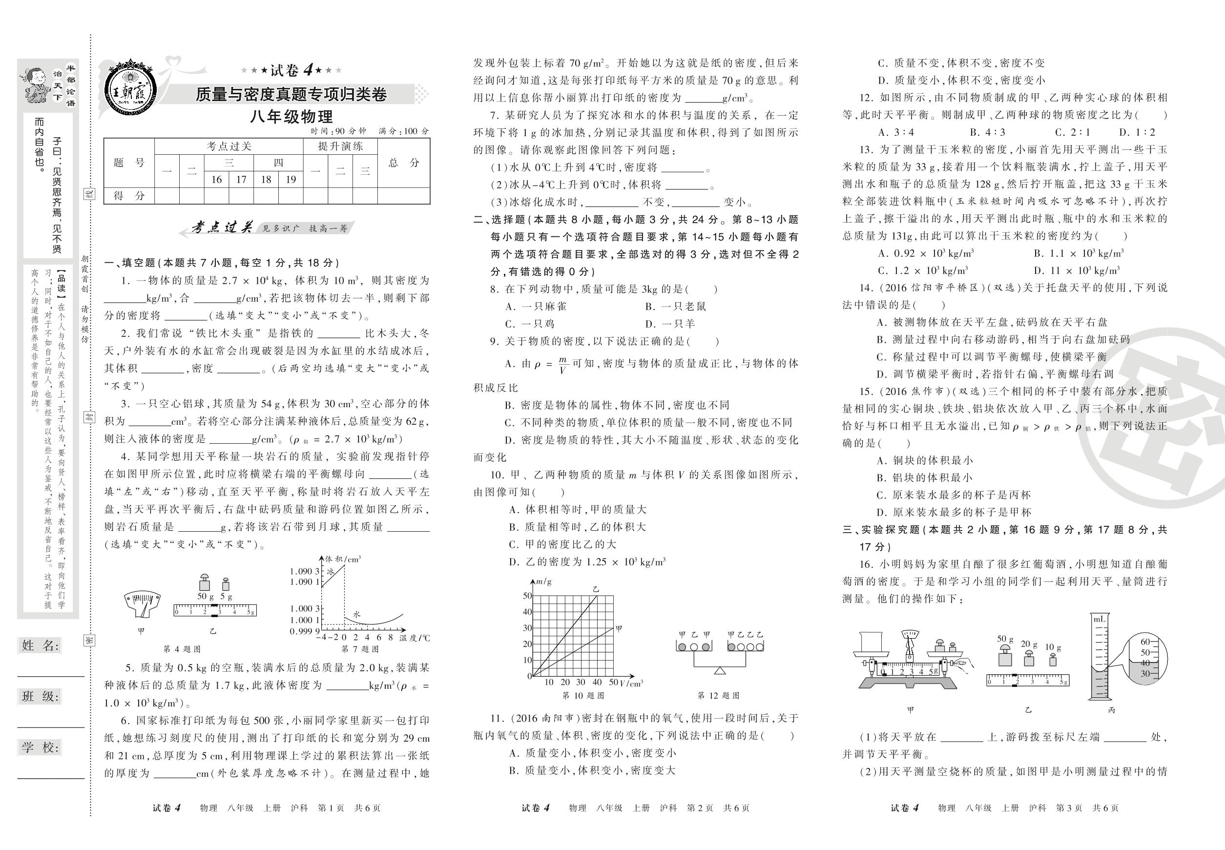 王朝霞期末专项卷八年级上册物理(沪科版)_R210810190703【4】