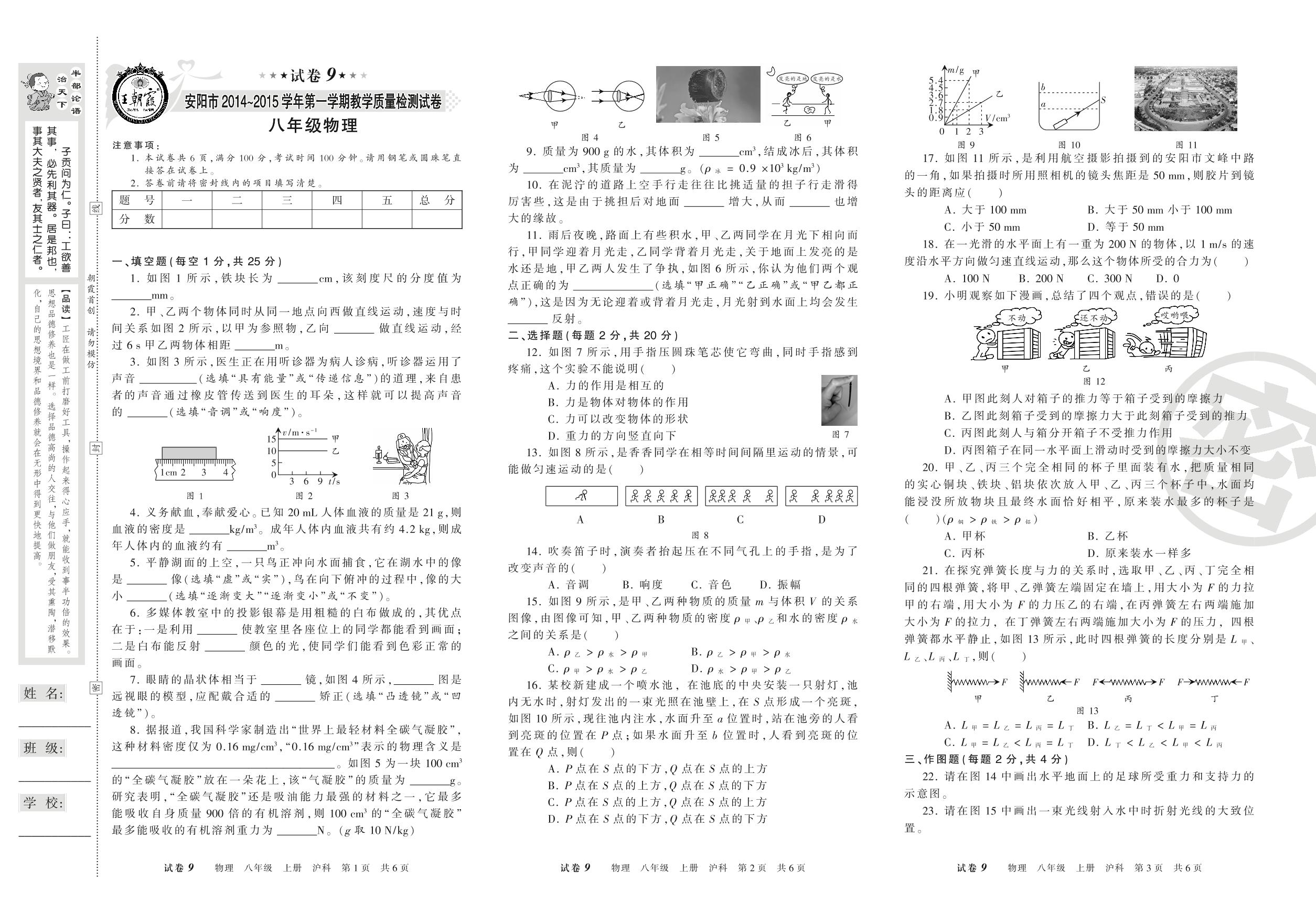 2014-2015学年第一学期安阳市八年级物理试卷(沪科版)【9】