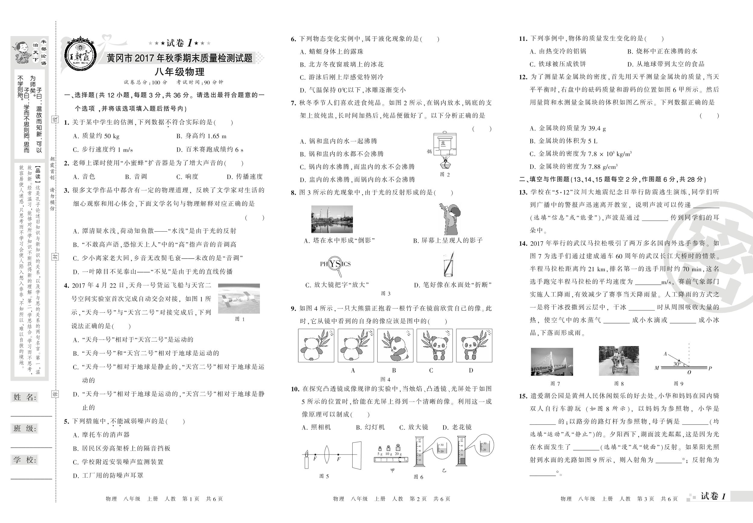 2017-2018学年第一学期黄冈市八年级物理试卷(人教版)【1】